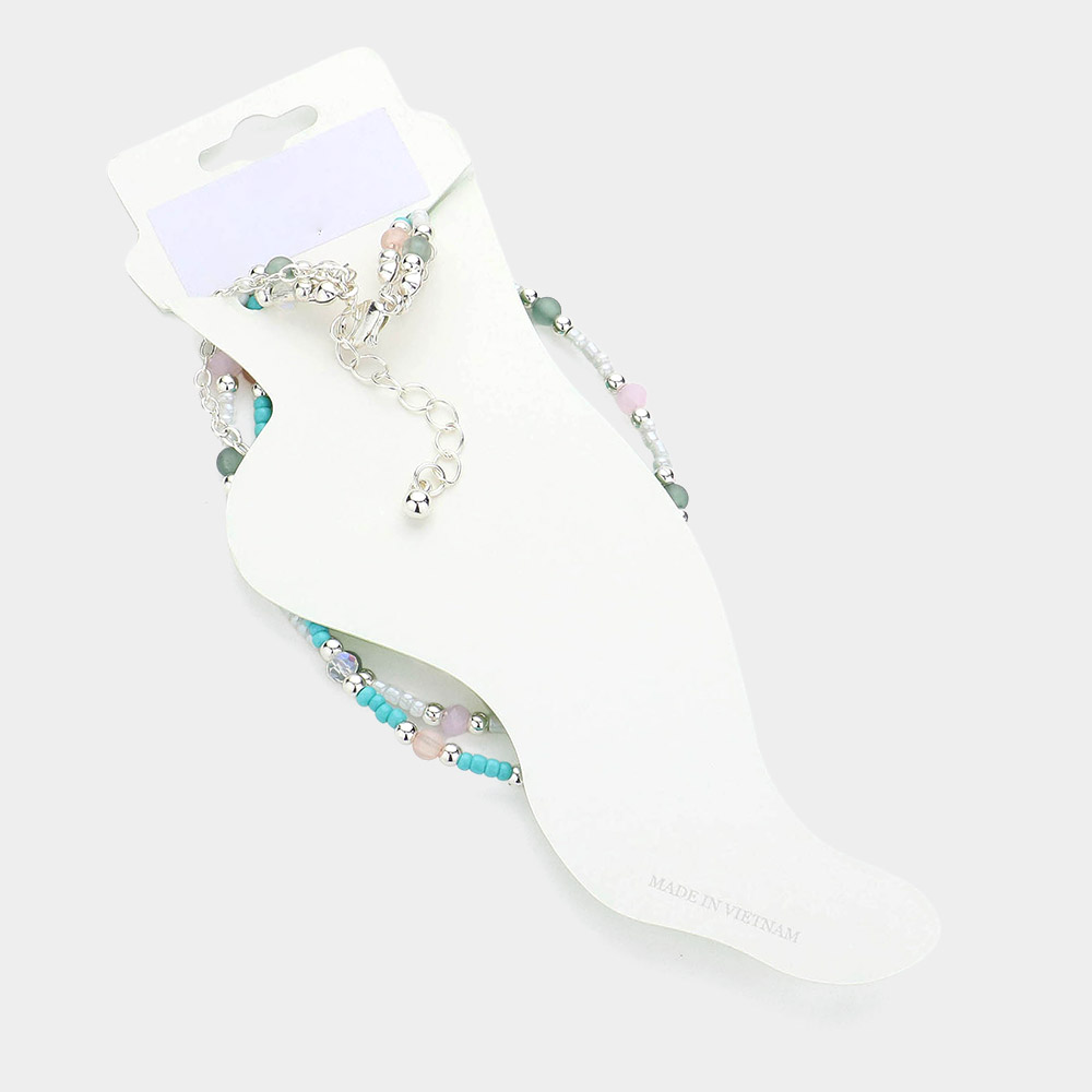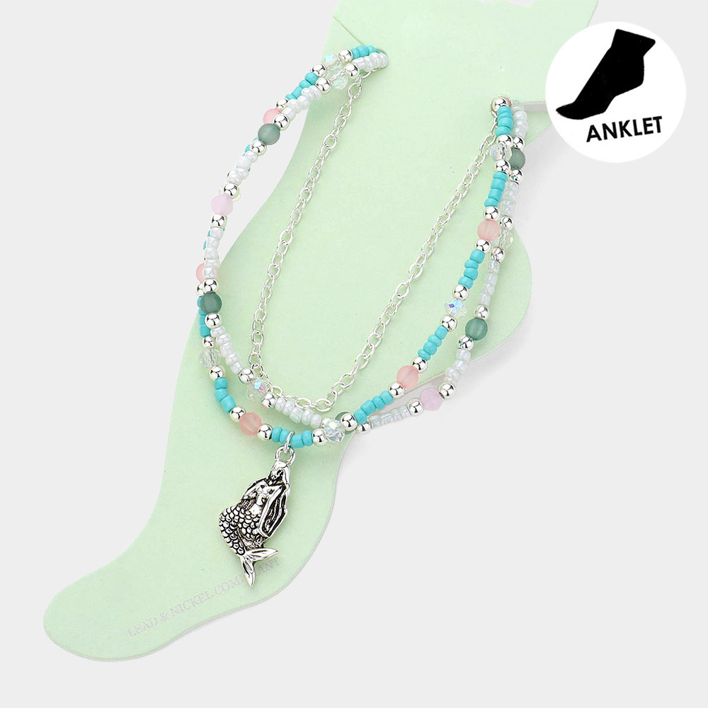 Mermaid Charm Seed Beads Faceted Beads Beaded Triple Layered Anklet