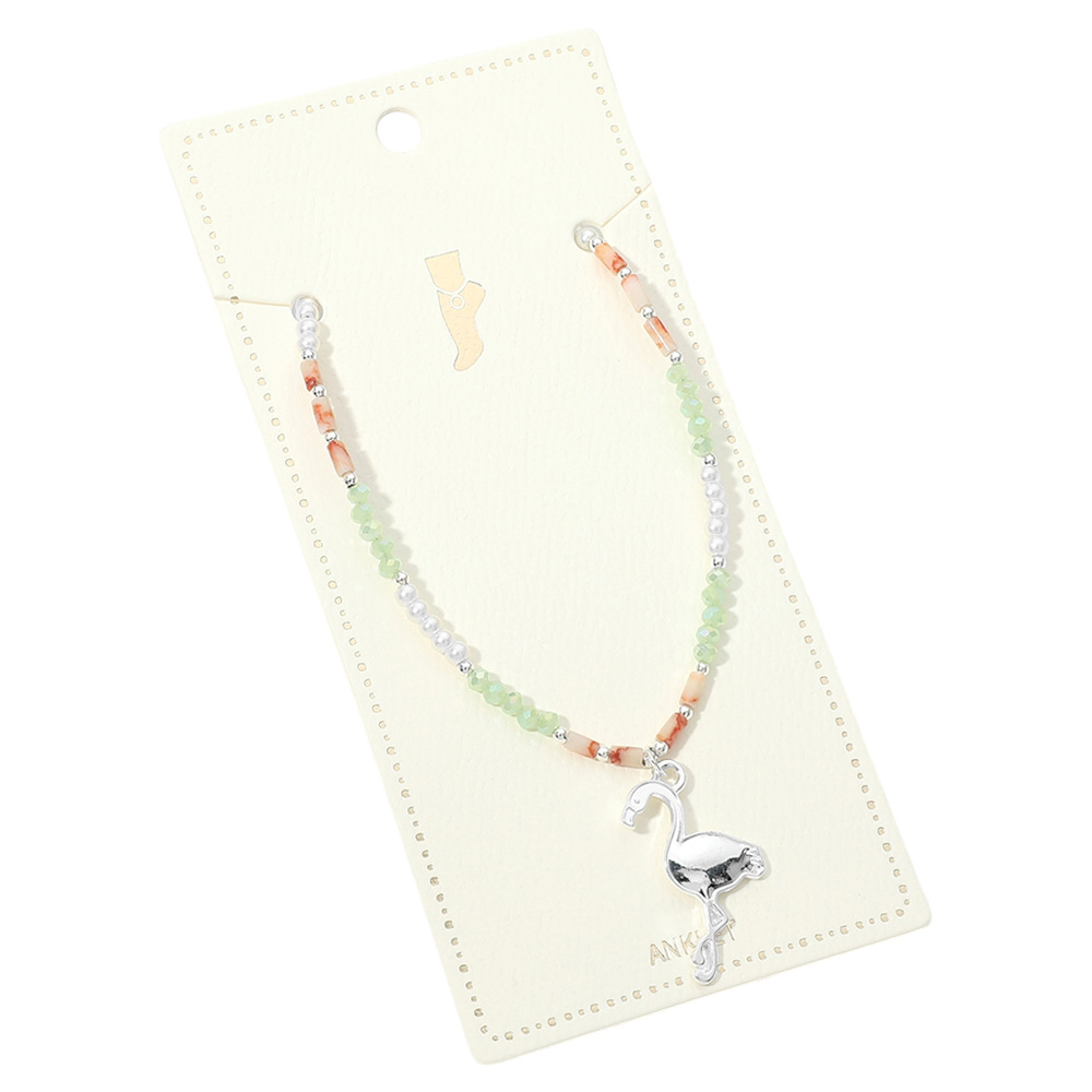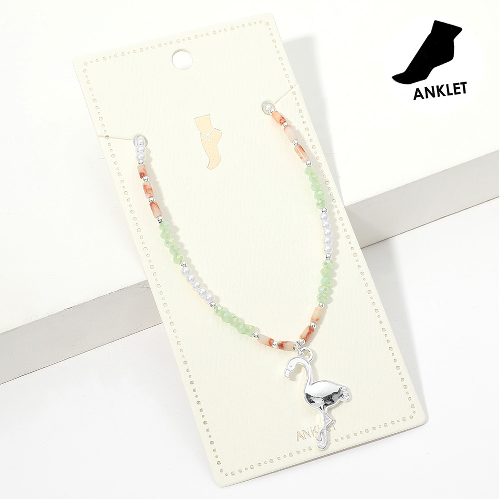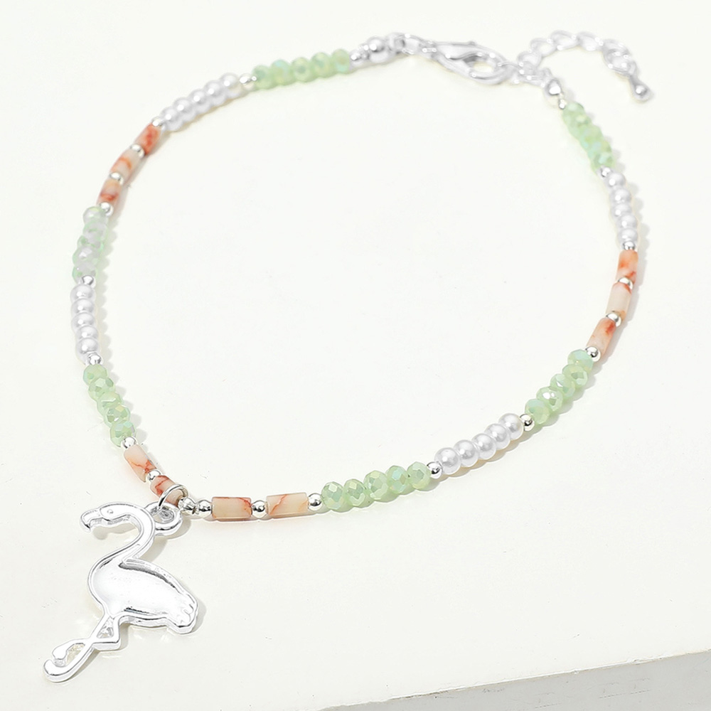 Metal Flamingo Charm Pearl Faceted Beaded Anklet