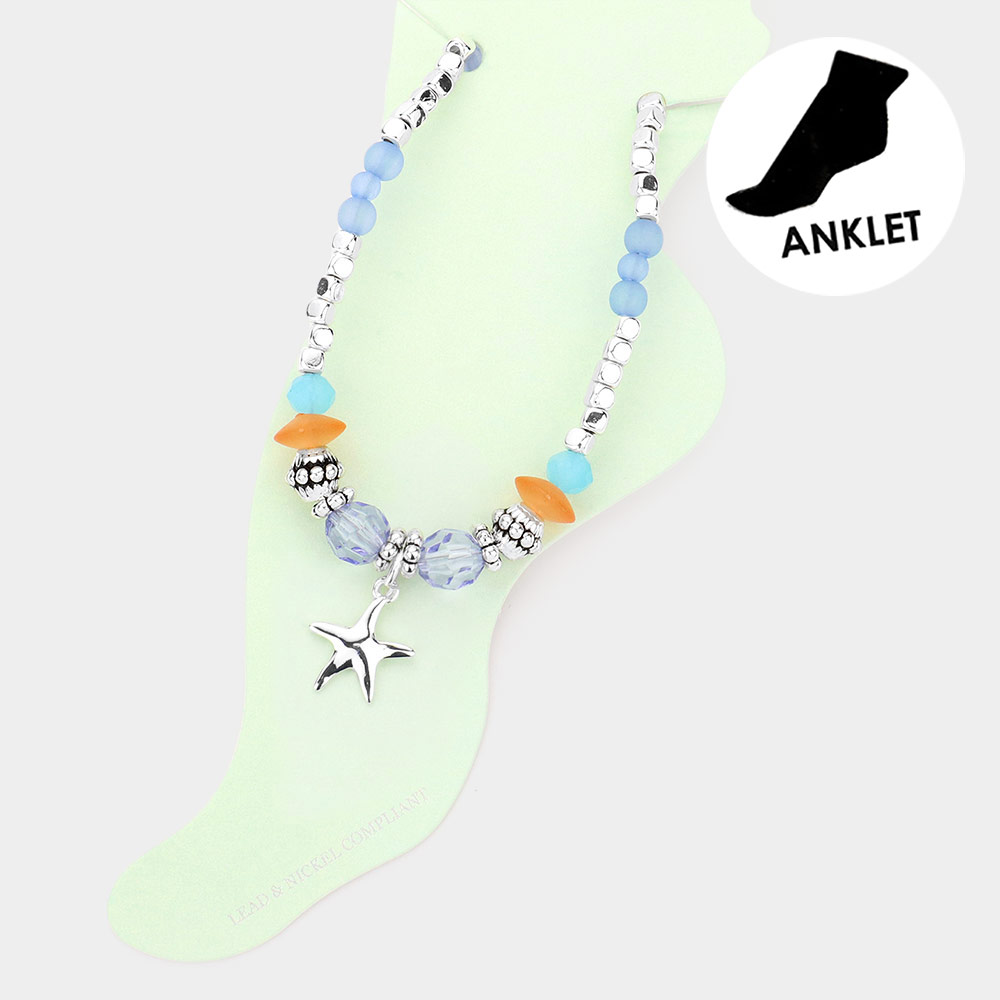 Metal Starfish Charm Beaded Anklet