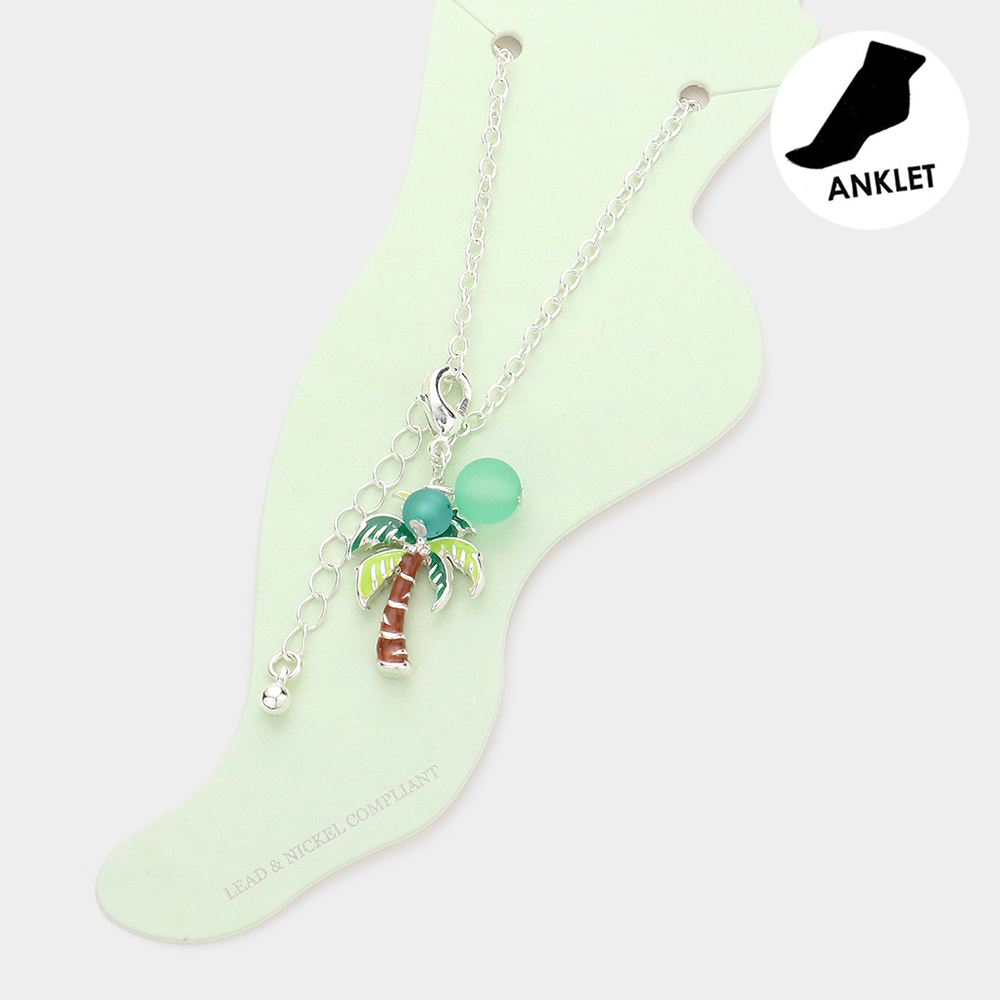Rhinestone Embellished Enamel Palm Tree Charm Anklet