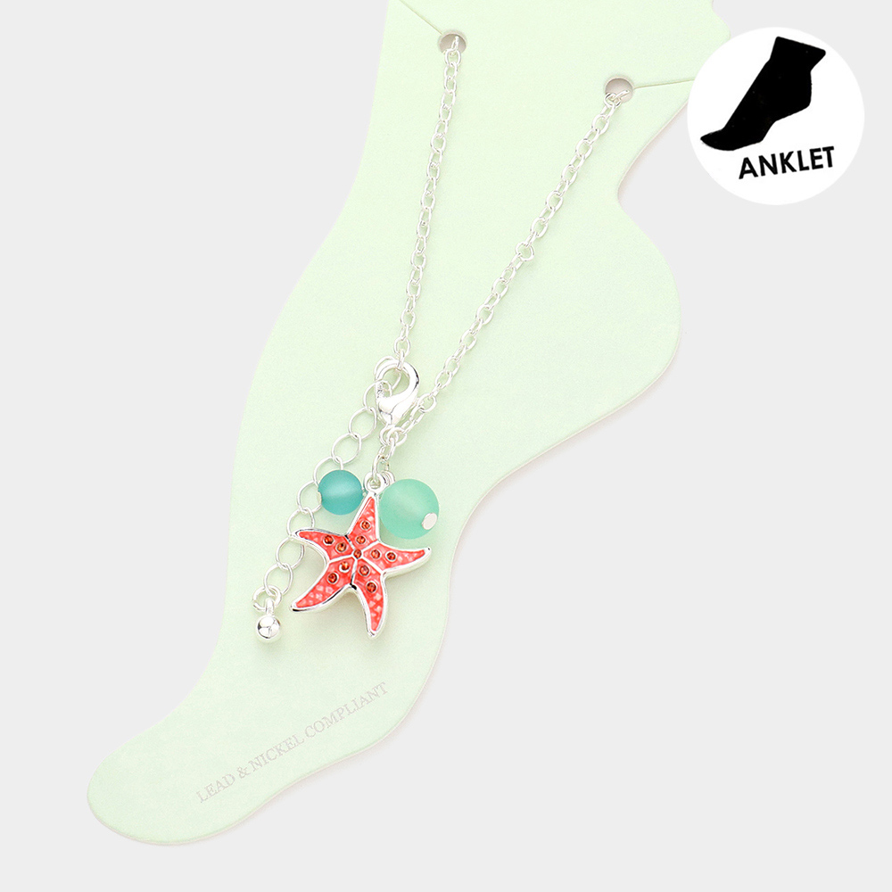 Rhinestone Embellished Enamel Starfish Charm Anklet
