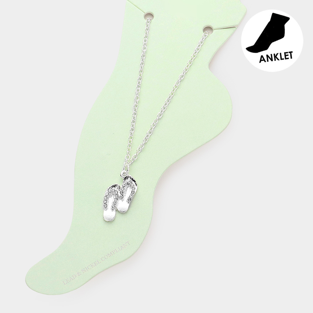 Rhinestone Embellished Metal Flip Flop Charm Anklet