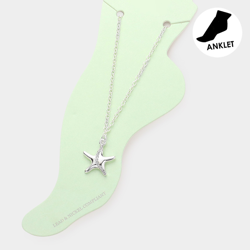 Rhinestone Embellished Metal Starfish Charm Anklet