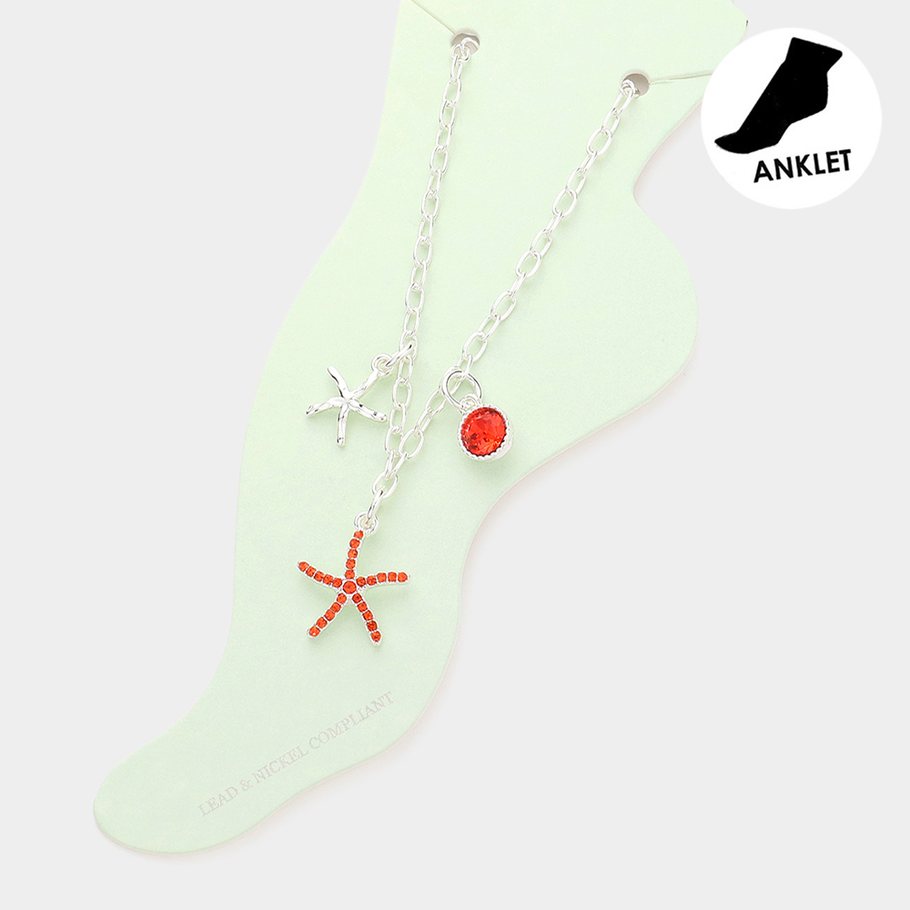 6PCS - Starfish Charm Accented Conch Shell Seed Beaded Multi Layered Anklets