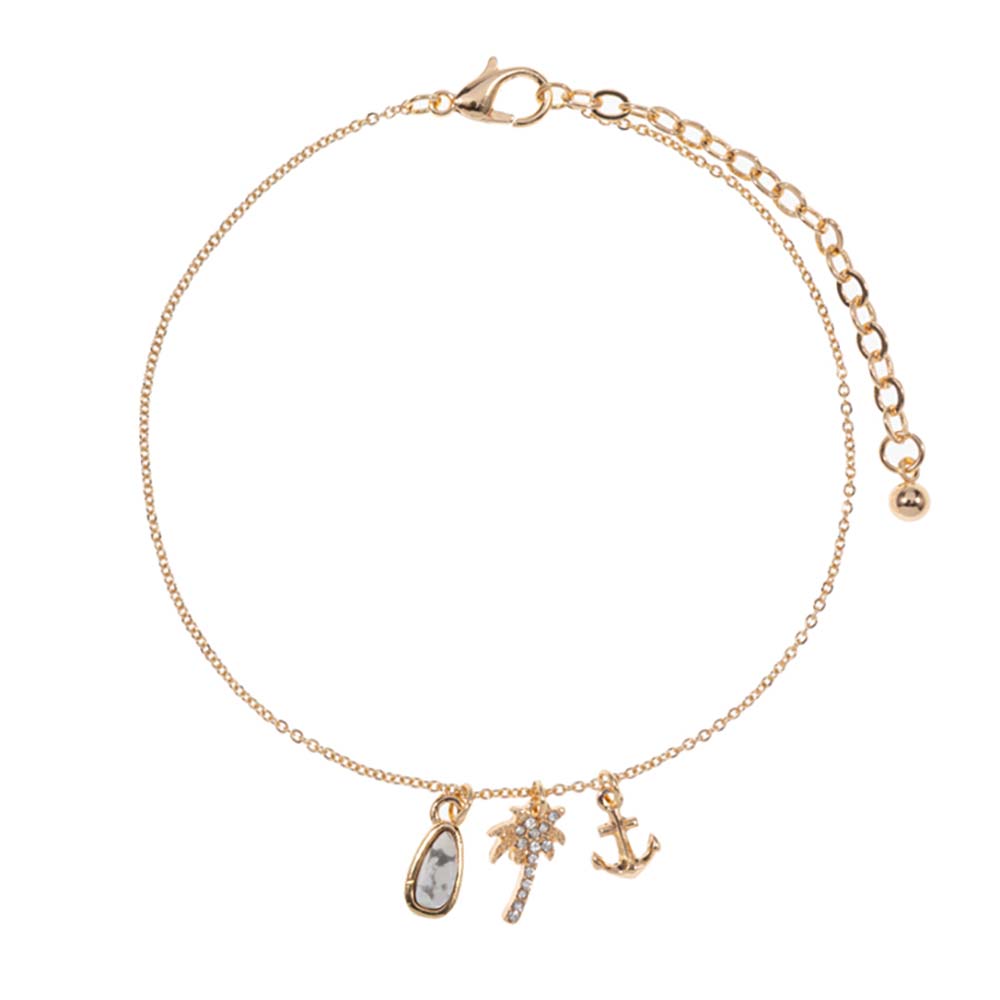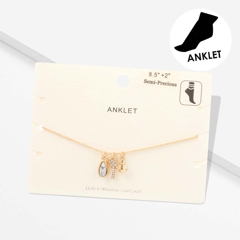 Semi Precious Teardrop Palm Tree Anchor Charm Anklet