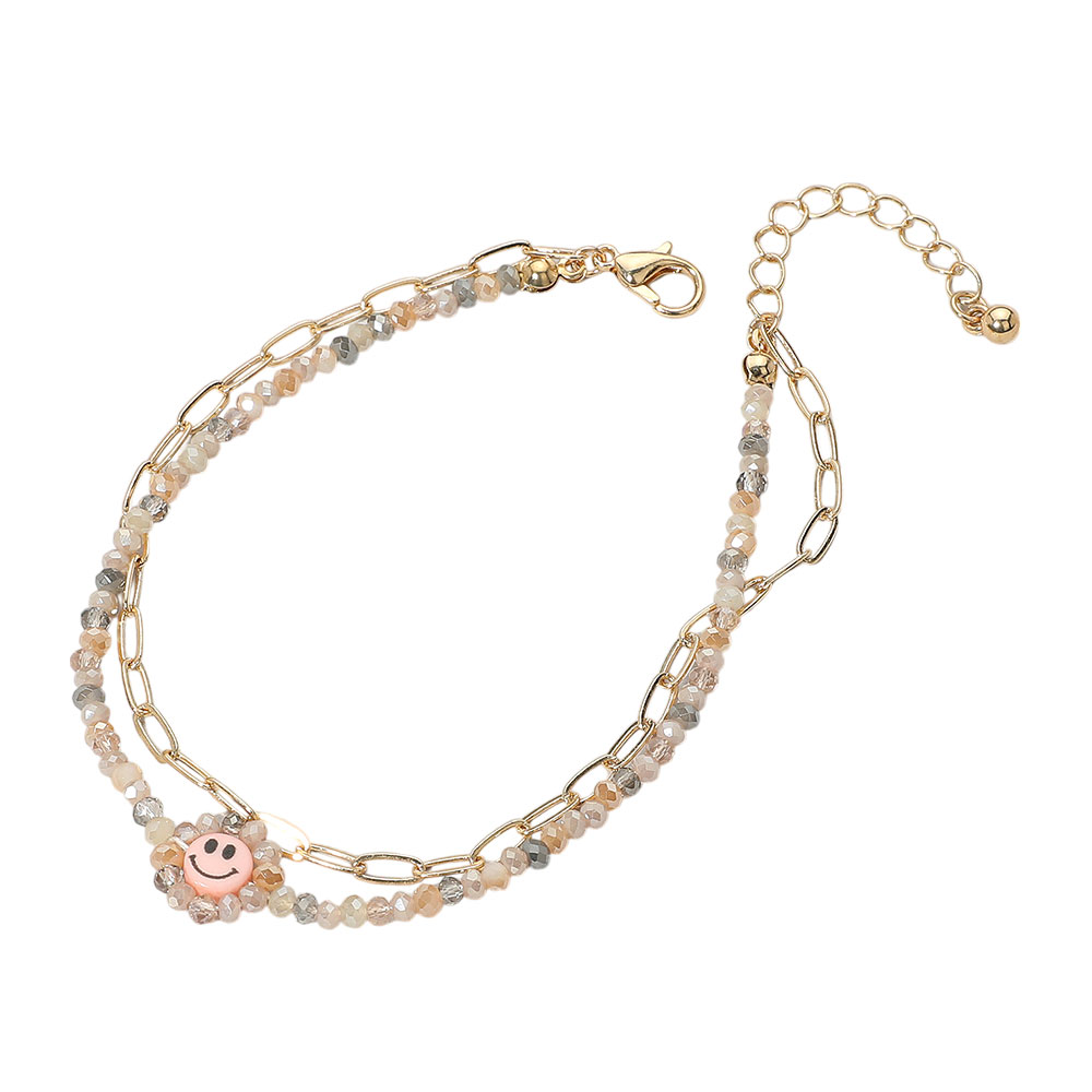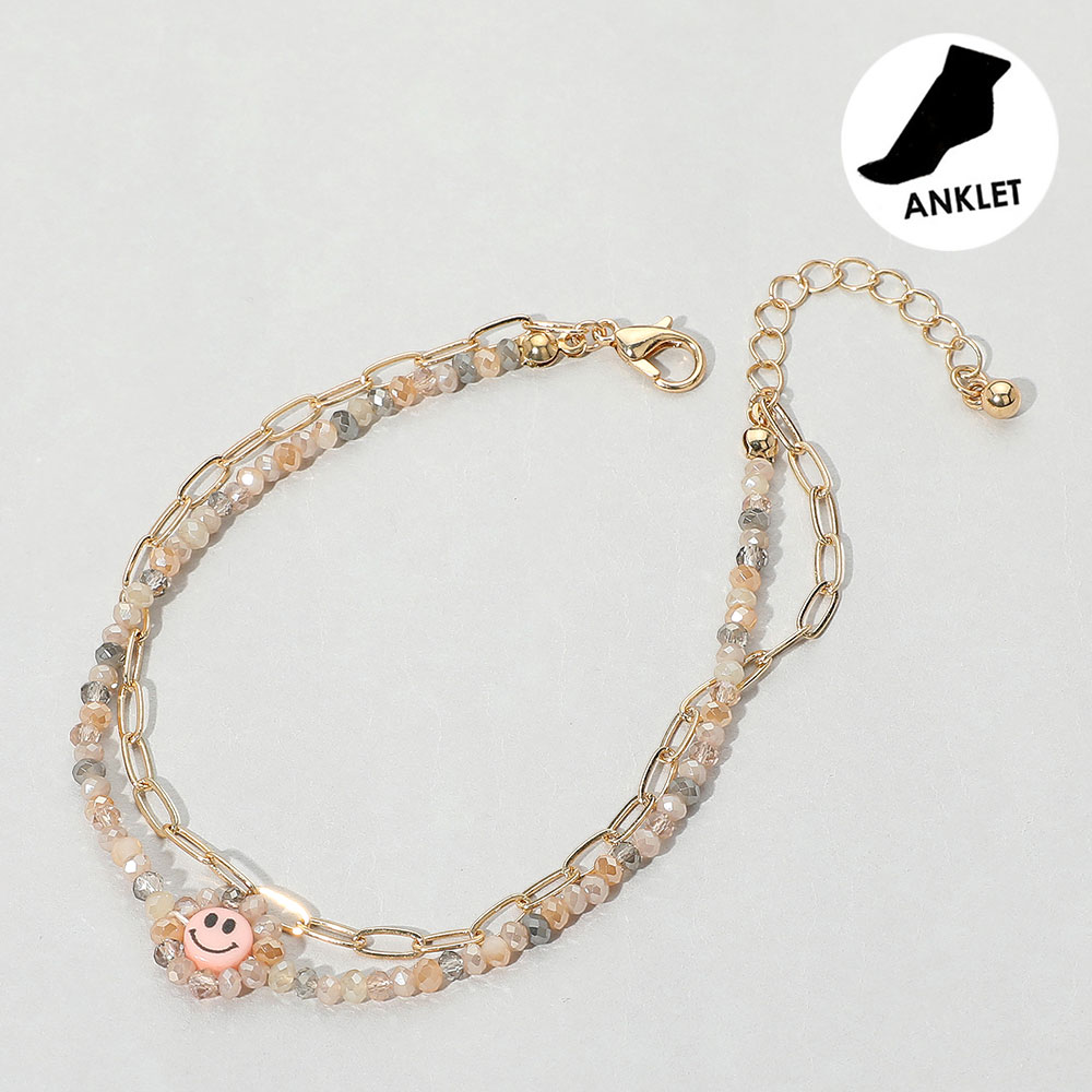 • Playful anklet featuring vibrant beads and a cheerful smiley charm. A fun accessory to brighten any outfit and add a youthful, carefree vibe.