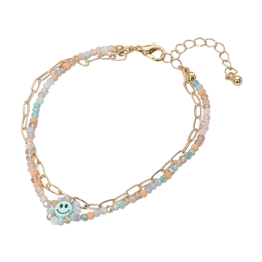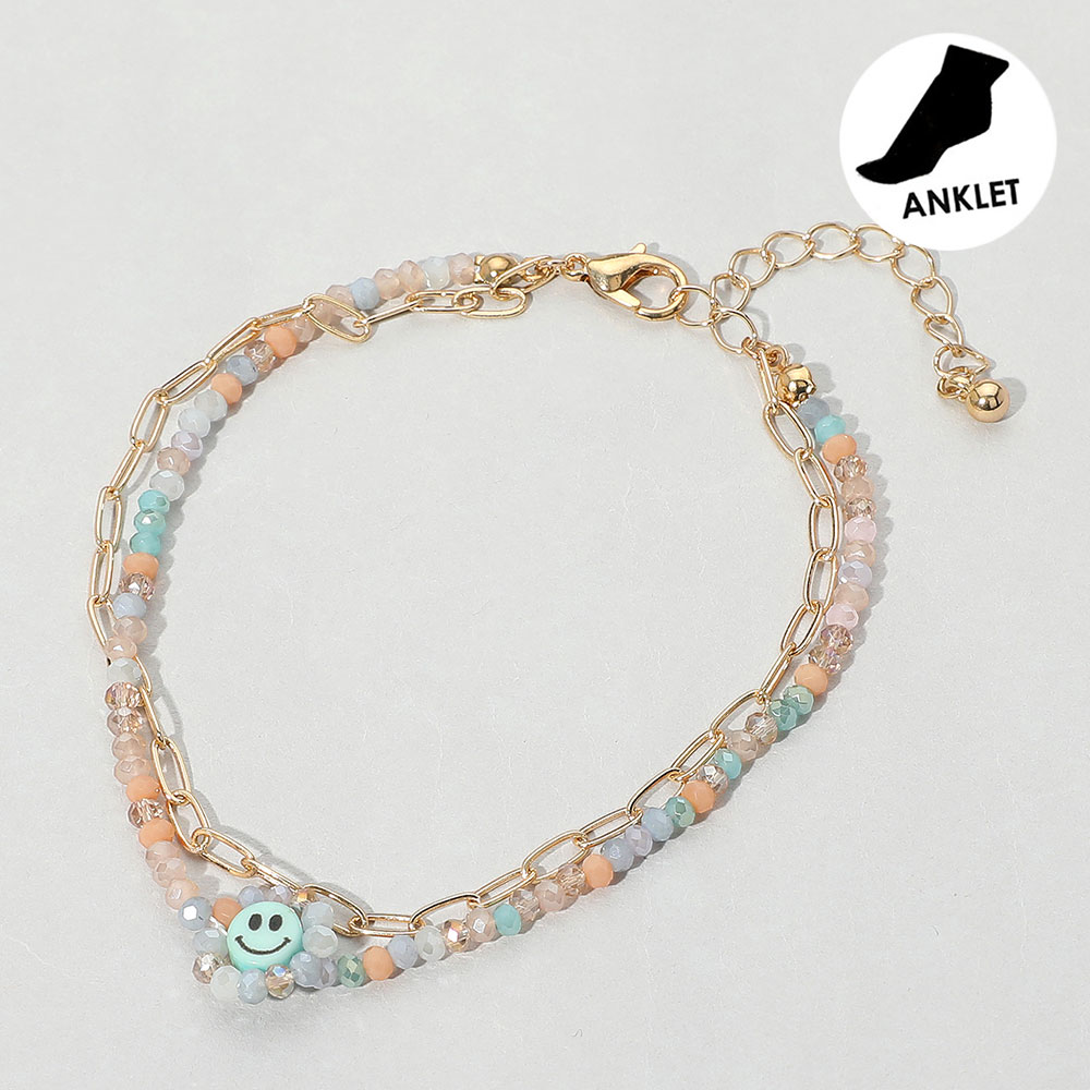 • Playful anklet featuring vibrant beads and a cheerful smiley charm. A fun accessory to brighten any outfit and add a youthful, carefree vibe.