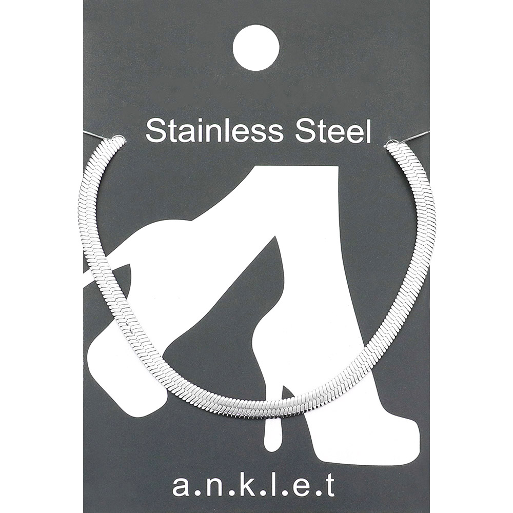 Details • Size : 0.2" H, 9.75" + 2" L • Lobster Clasp Closure • This sleek stainless steel snake chain anklet adds a modern touch to any look. Its fluid, textured design wraps comfortably around the ankle, offering a bold yet refined statement that's ideal for everyday wear or elevating evening ensembles. • Stainless Steel
