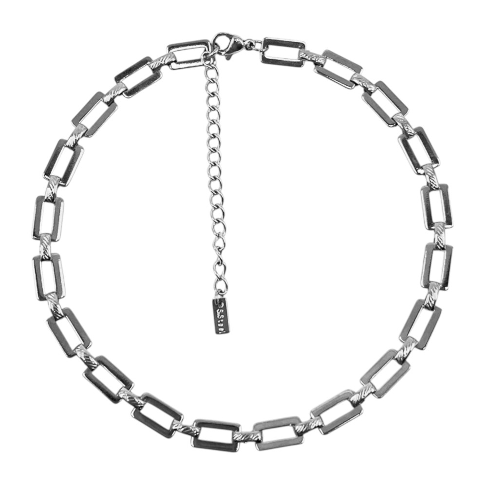 • Bold stainless steel anklet with rectangular links and textured accents. A stylish piece that adds a modern edge to any outfit, ideal for layering or wearing as a standout accessory.
