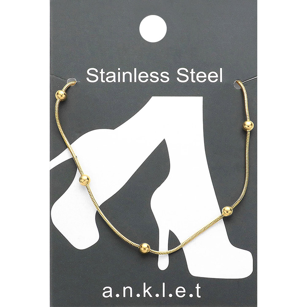 Details • Size : 0.1" H, 9.75" + 2" L • Lobster Clasp Closure • Add a subtle touch of elegance with this minimalist anklet featuring spaced beads on a delicate stainless steel chain. Perfect for everyday wear or layered looks, this refined accessory effortlessly enhances your ankle with understated sophistication. • Stainless Steel