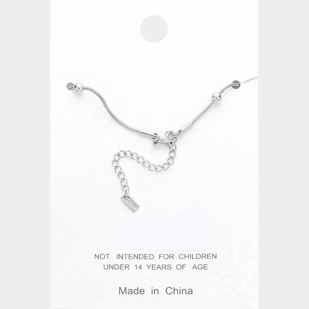Details • Size : 0.1" H, 9.75" + 2" L • Lobster Clasp Closure • Add a subtle touch of elegance with this minimalist anklet featuring spaced beads on a delicate stainless steel chain. Perfect for everyday wear or layered looks, this refined accessory effortlessly enhances your ankle with understated sophistication. • Stainless Steel