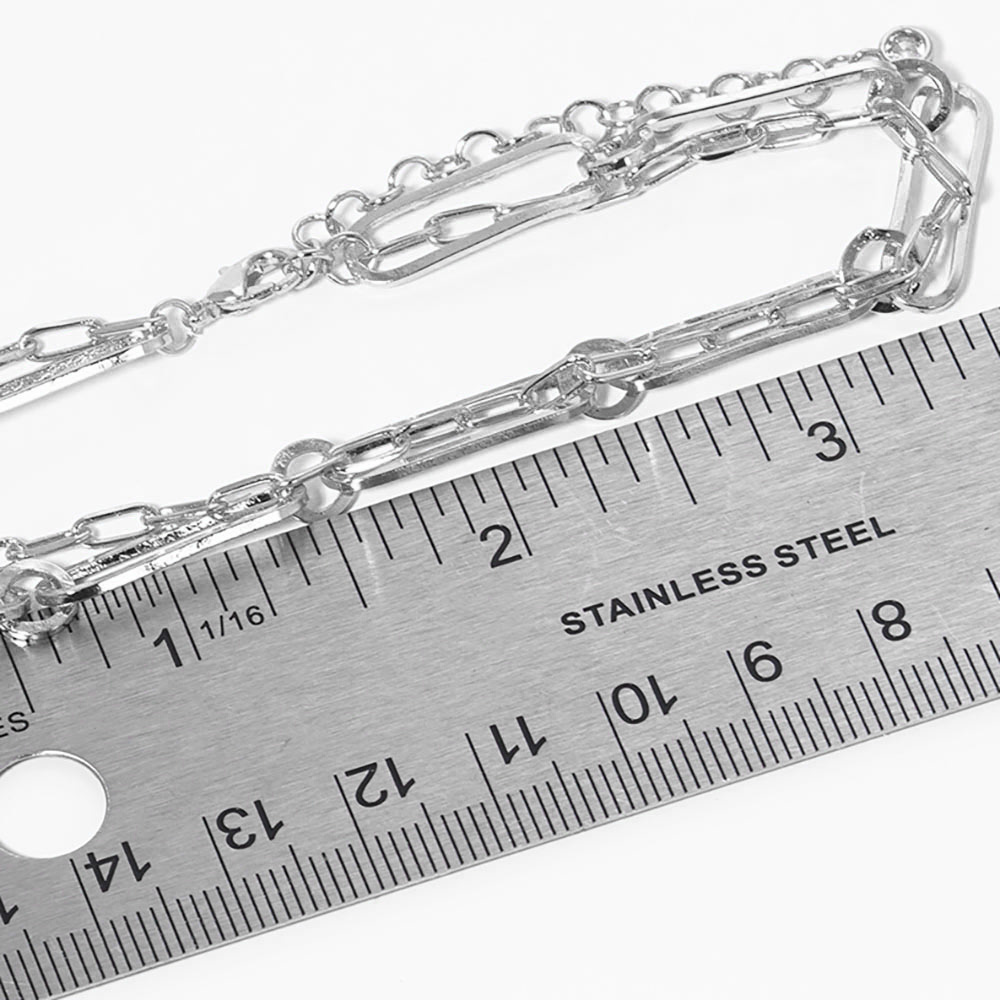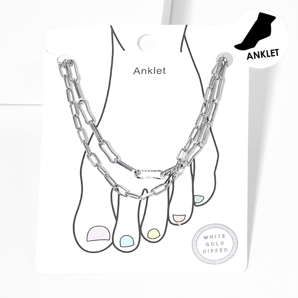 White Gold Dipped Open Metal Oval Link Double Layered Anklet