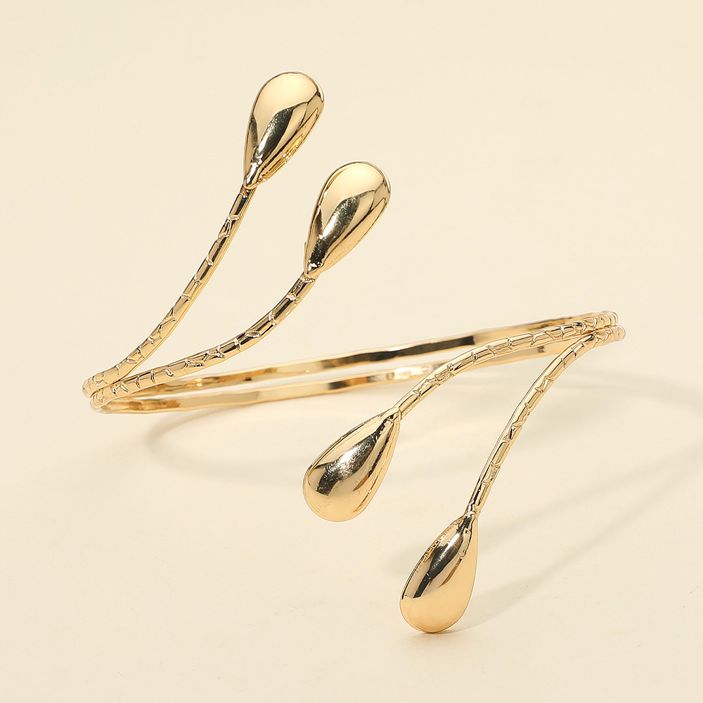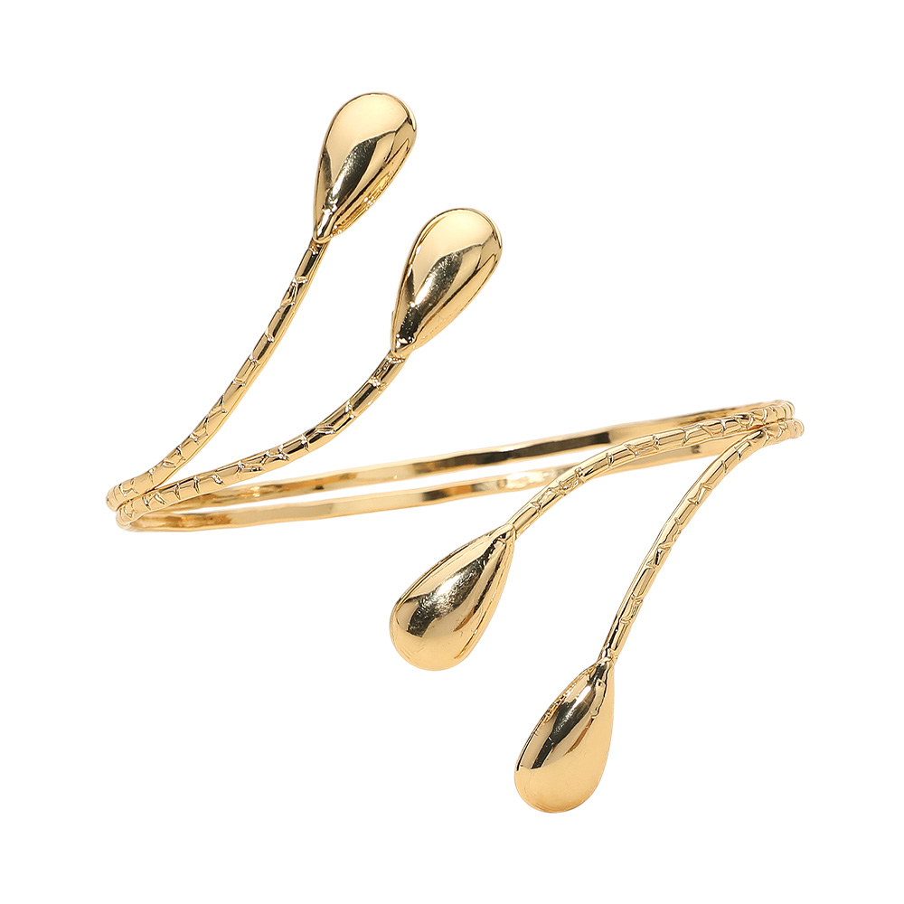Details • Size : 3.75" H • Adjustable / Cuff • Elevate your style with this abstract teardrop cuff bracelet, featuring a sleek open design with artistic droplet accents. Adjustable for a comfortable fit, it’s a bold yet elegant accessory that adds a modern touch to both casual and dressy outfits. • Lead and Nickel Compliant
