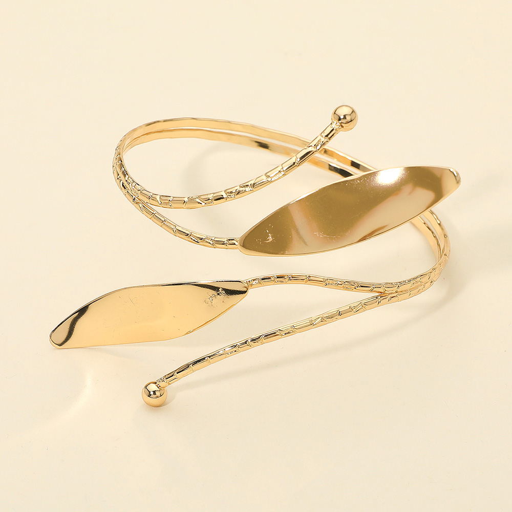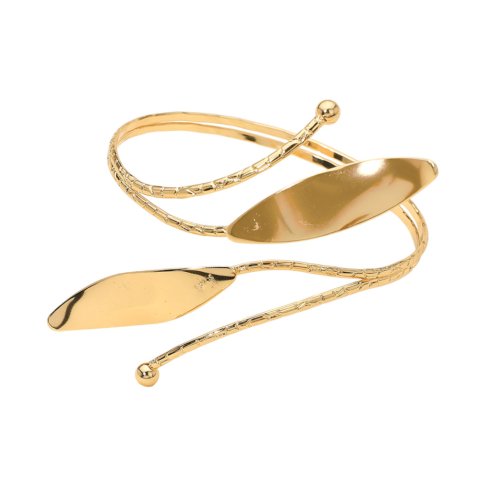 Details • Size : 2.25" H • Adjustable / Cuff • Make a bold statement with this elongated accent adjustable arm cuff, crafted with flowing lines and sleek detailing for a contemporary edge. Lightweight and versatile, it enhances evening outfits, festivals, or parties with a touch of modern artistry. • Lead and Nickel Compliant