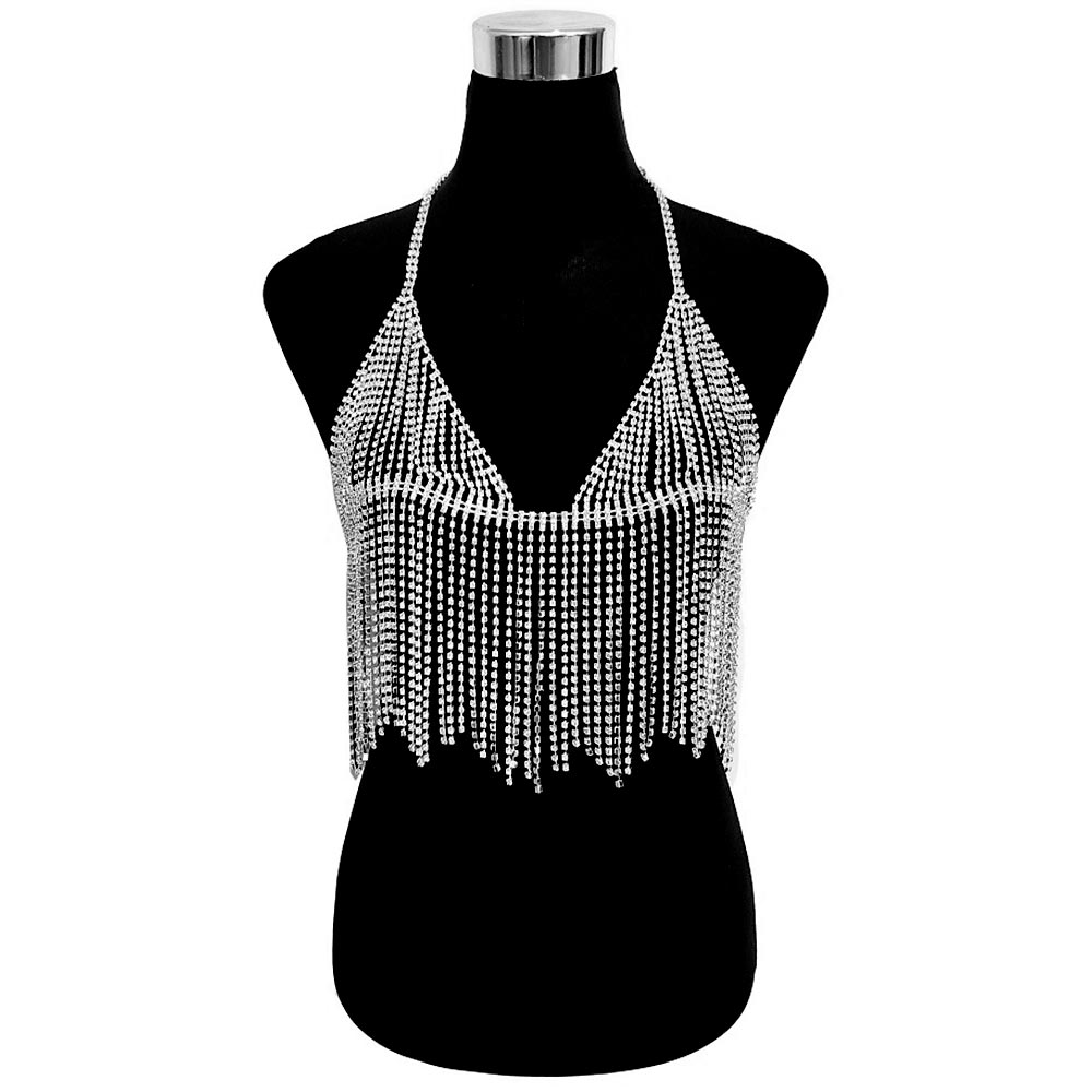 Emerald Cut Stone Accented Rhinestone Fringe Dangle Evening Earrings