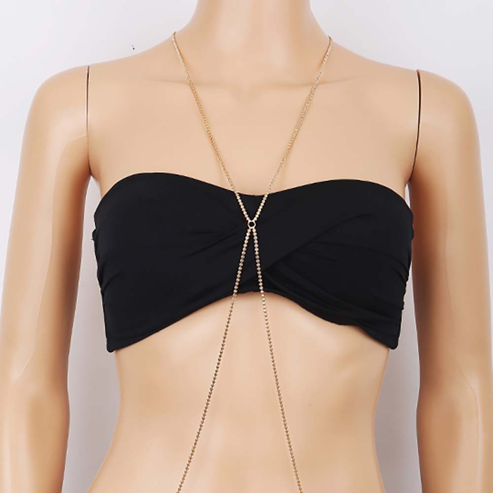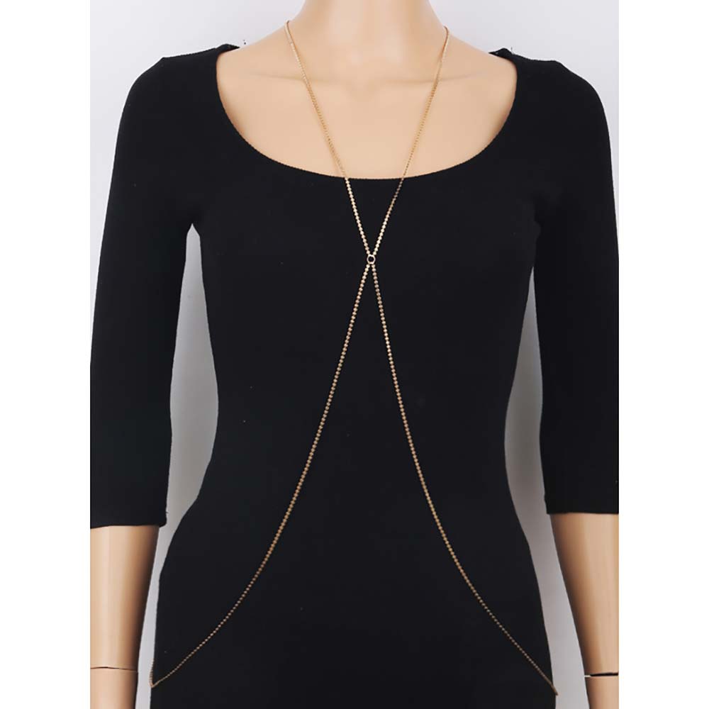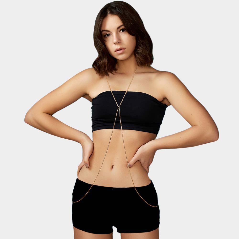 V Neck Beaded Metal Body Chain