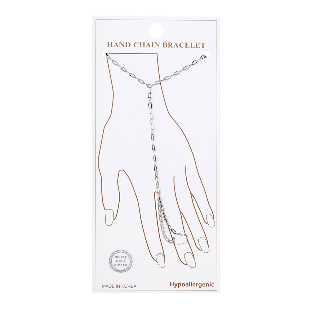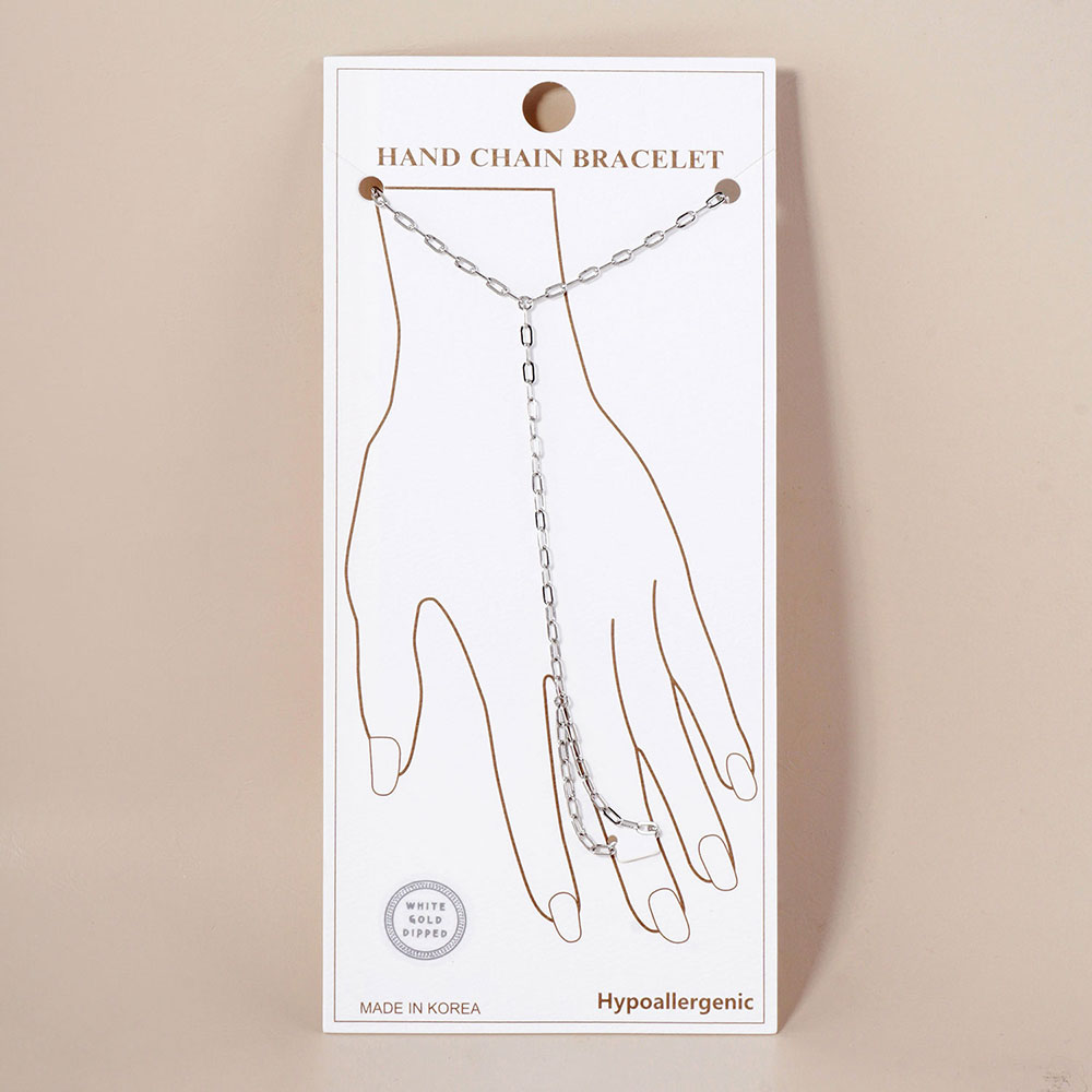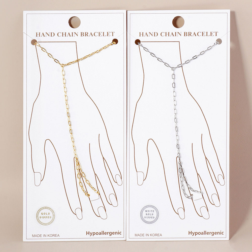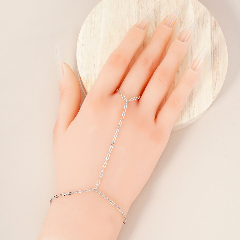 • Delicate hand chain bracelet featuring fine link chain design for a sleek and elegant everyday accessory.