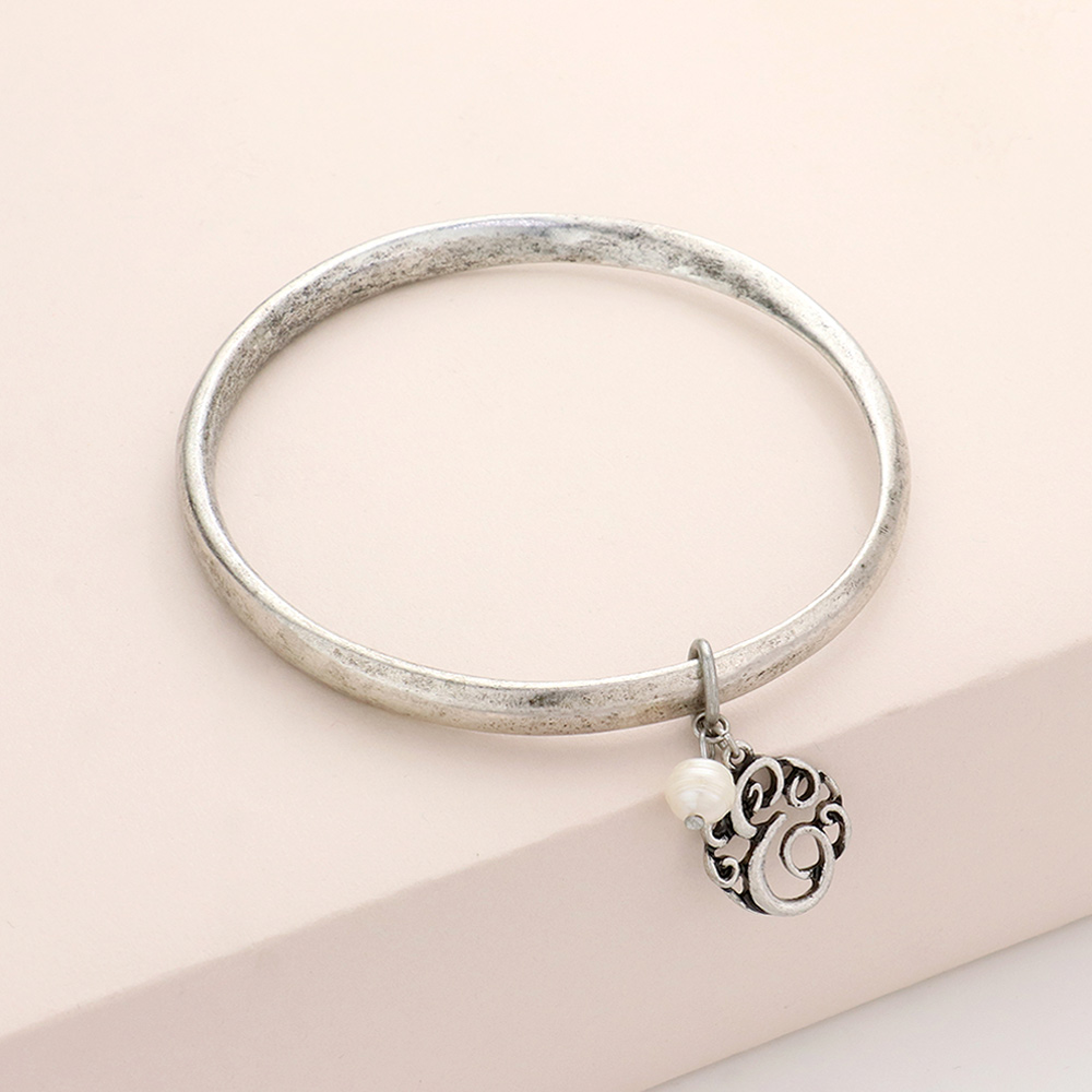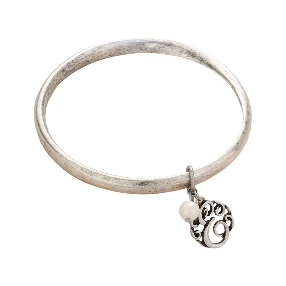 -C- Initial Initial Monogram Pearl Charm Bangle Bracelet