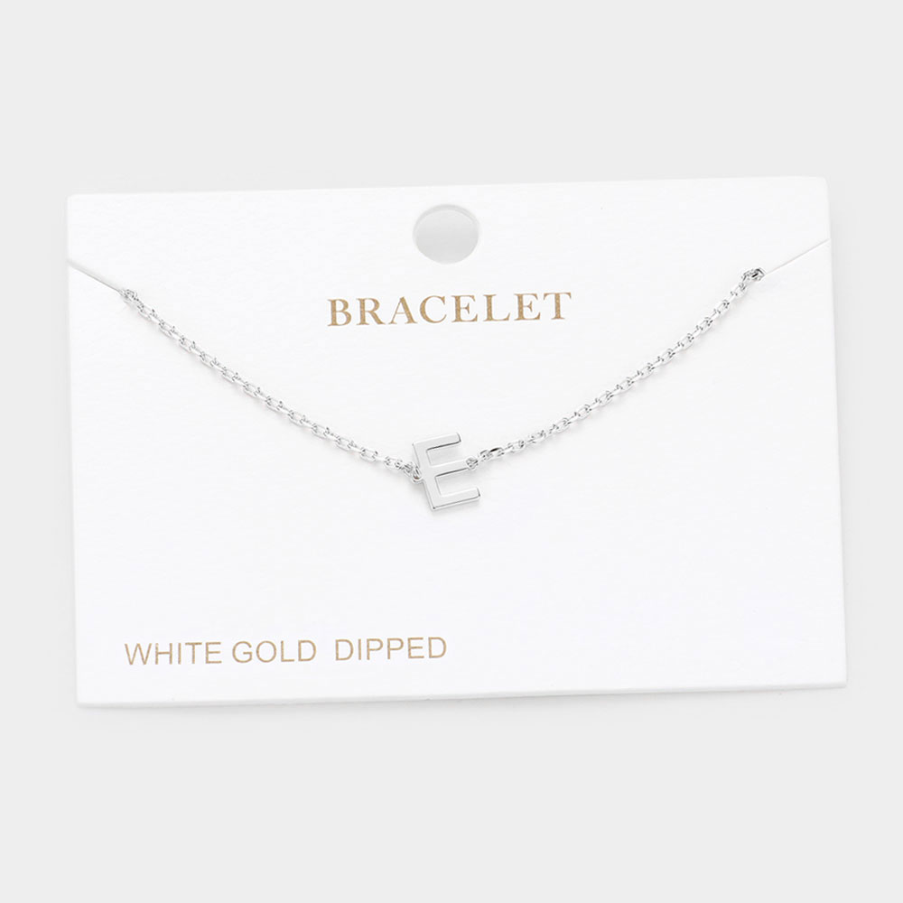 -E- White Gold Dipped Metal Initial Monogram Charm Bracelet
