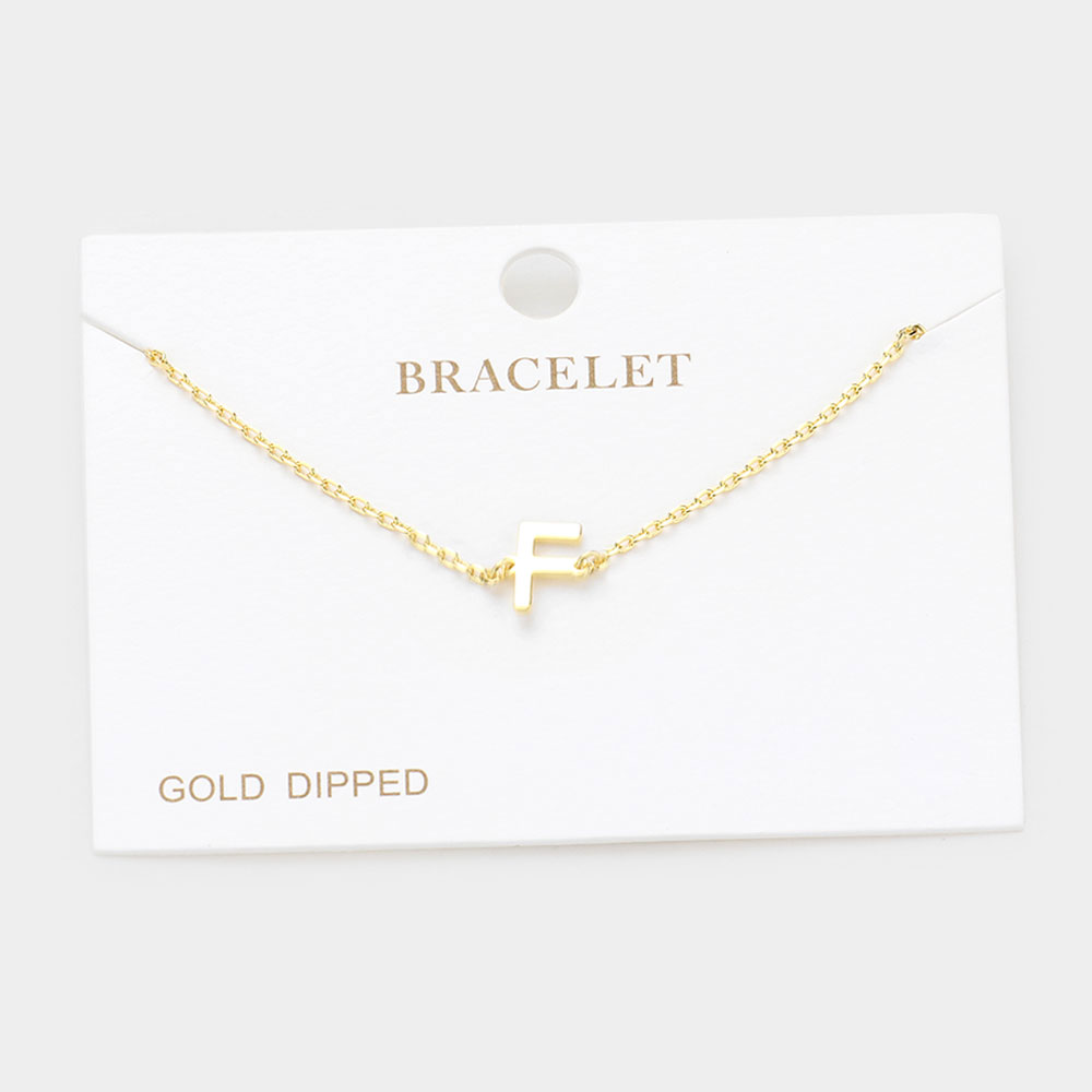 -F- Gold Dipped Metal Initial Monogram Charm Bracelet