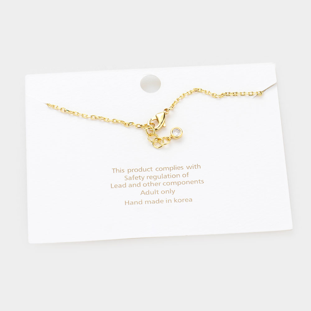 Semi Fine Collection - 18K Gold Dipped Brass Metal Stone Paved MAMA Monogram Charm Paperclip Chain Necklace