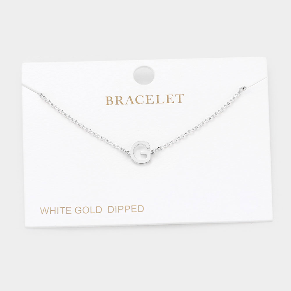 -G- White Gold Dipped Metal Initial Monogram Charm Bracelet