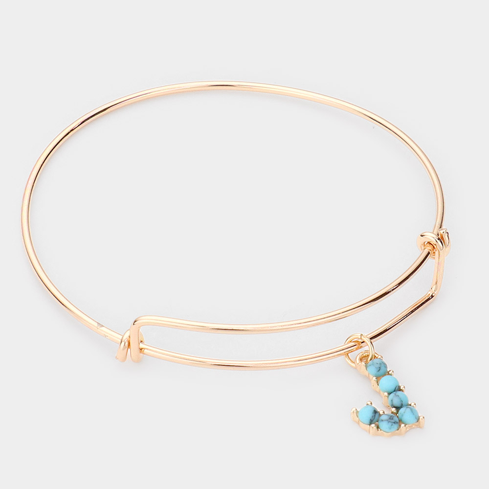 -J- Turquoise Embellished Initial Monogram Charm Bracelet