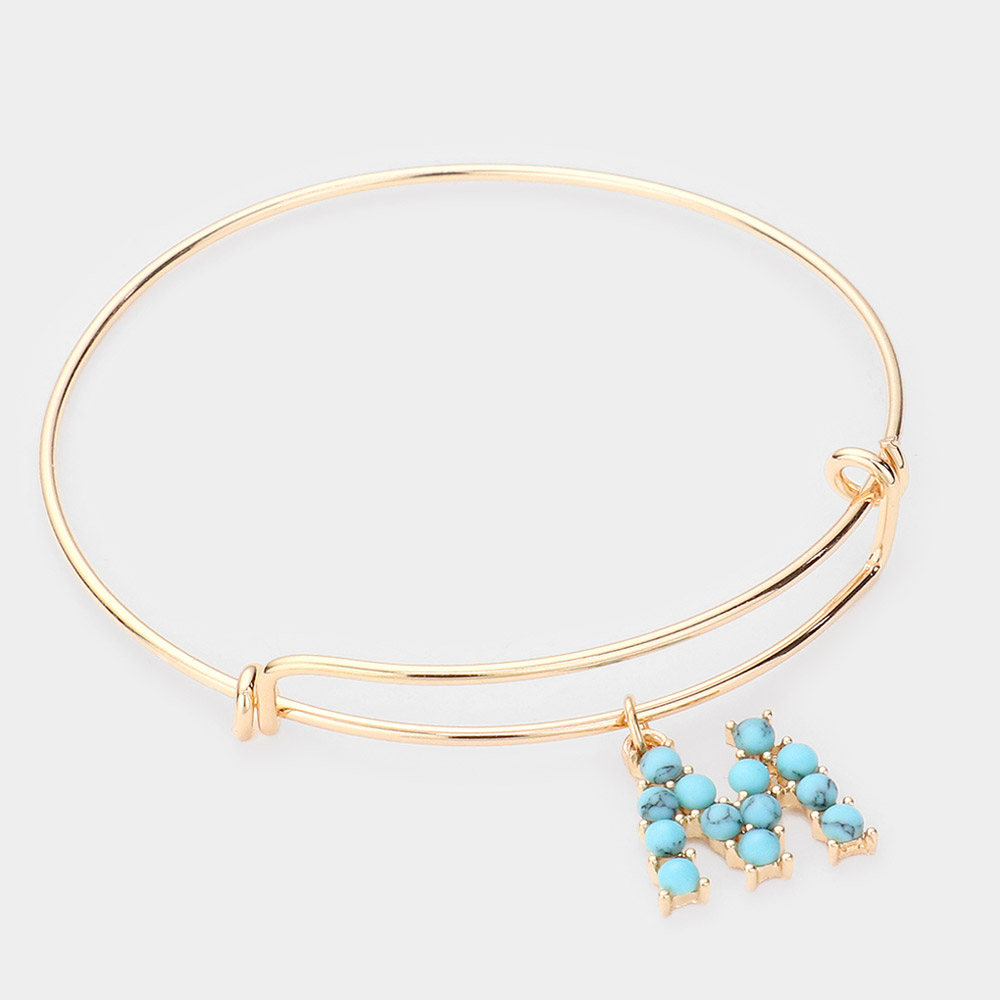 -M- Turquoise Embellished Initial Monogram Charm Bracelet