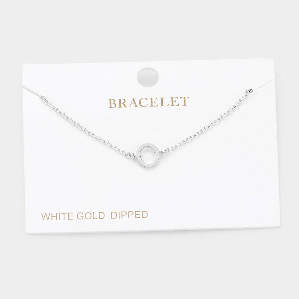 -O- White Gold Dipped Metal Initial Monogram Charm Bracelet