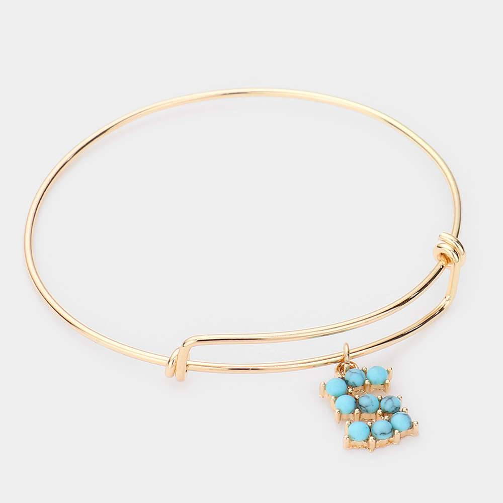 -B- Turquoise Embellished Initial Monogram Charm Bracelet