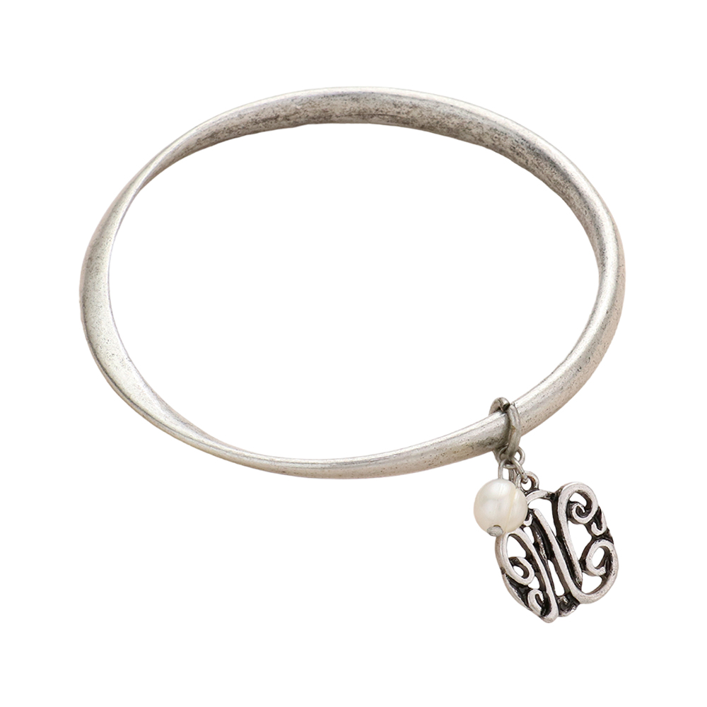 -N- Initial Initial Monogram Pearl Charm Bangle Bracelet