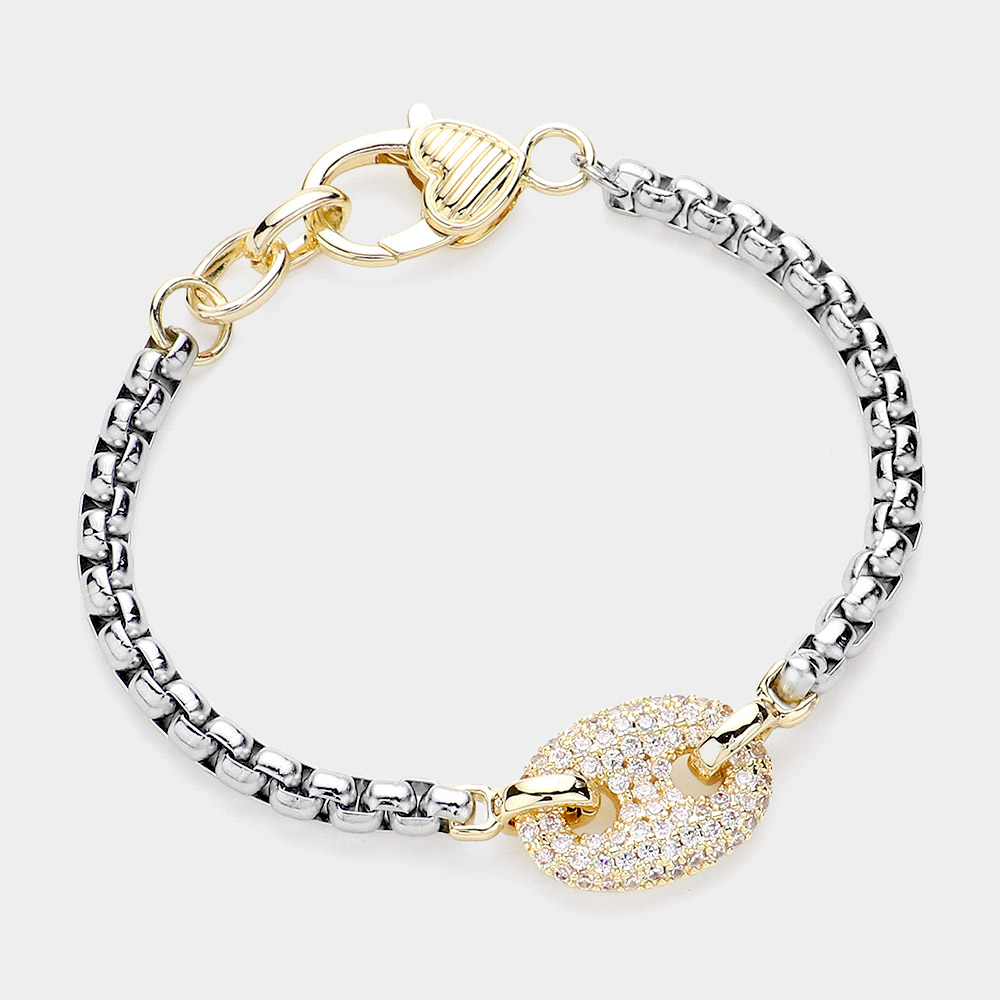 14K Gold Plated CZ Stone Paved Mariner Link Charm Pointed Bracelet