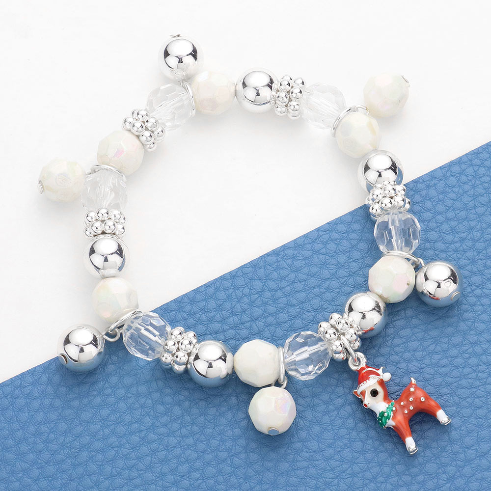 Details • Size : 1.25" H • Stretchable • Add festive charm to your look with this playful bracelet featuring a reindeer charm and shimmering bead accents. A delightful accessory for holiday celebrations or gifting, offering a whimsical touch with seasonal spirit. • Lead and Nickel Compliant