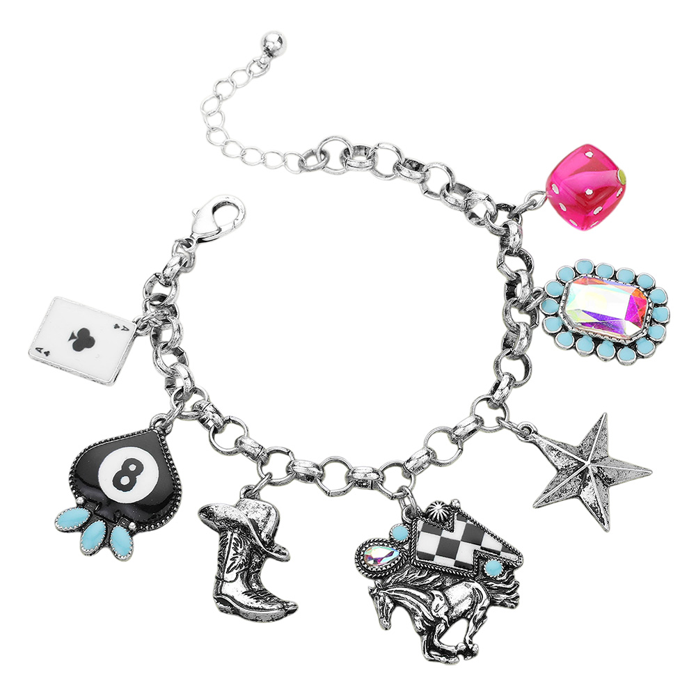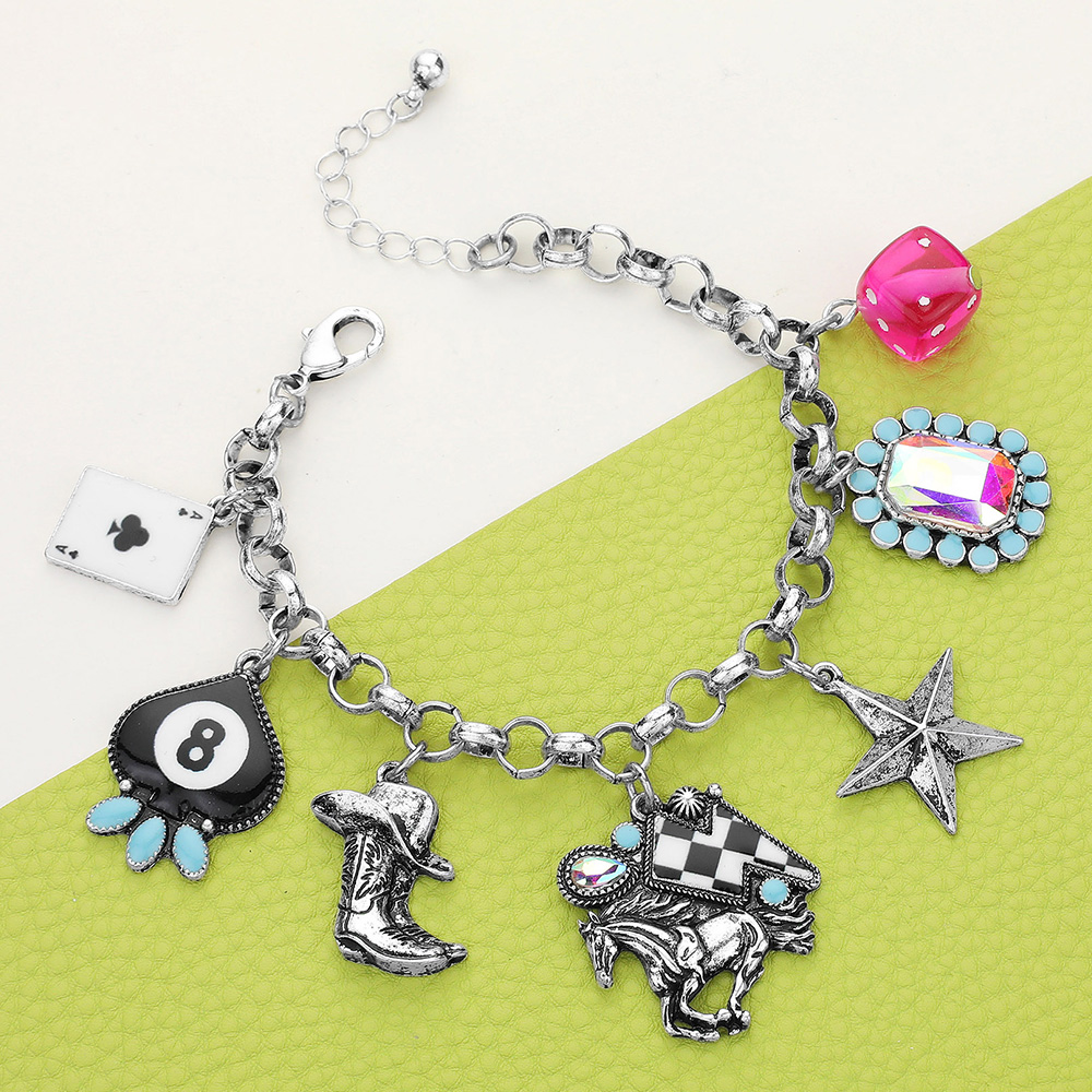 Ace Of Clover 8 Ball Billiard Metal Western Boot Horse Star Dice Charm Station Bracelet