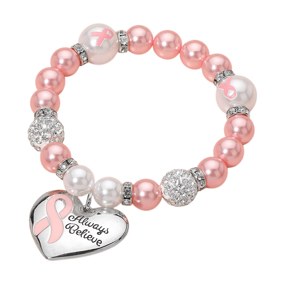 Details • Size : 0.5" H • Charm Size : 1.25" X 1" • Stretchable • Show your support in style with this awareness ribbon stretch bracelet featuring beaded detailing, sparkling accents, and a heart-shaped charm inscribed with "Always Believe." A thoughtful and empowering accessory to wear or gift as a symbol of strength and hope. • Lead and Nickel Compliant