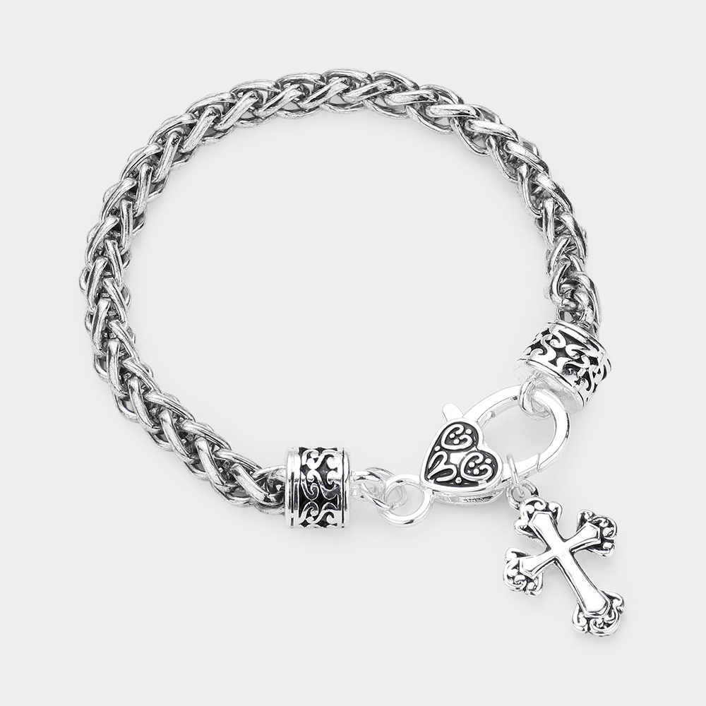 Boho Heart Locket Bow Cross Charm Station Fabric Bracelet