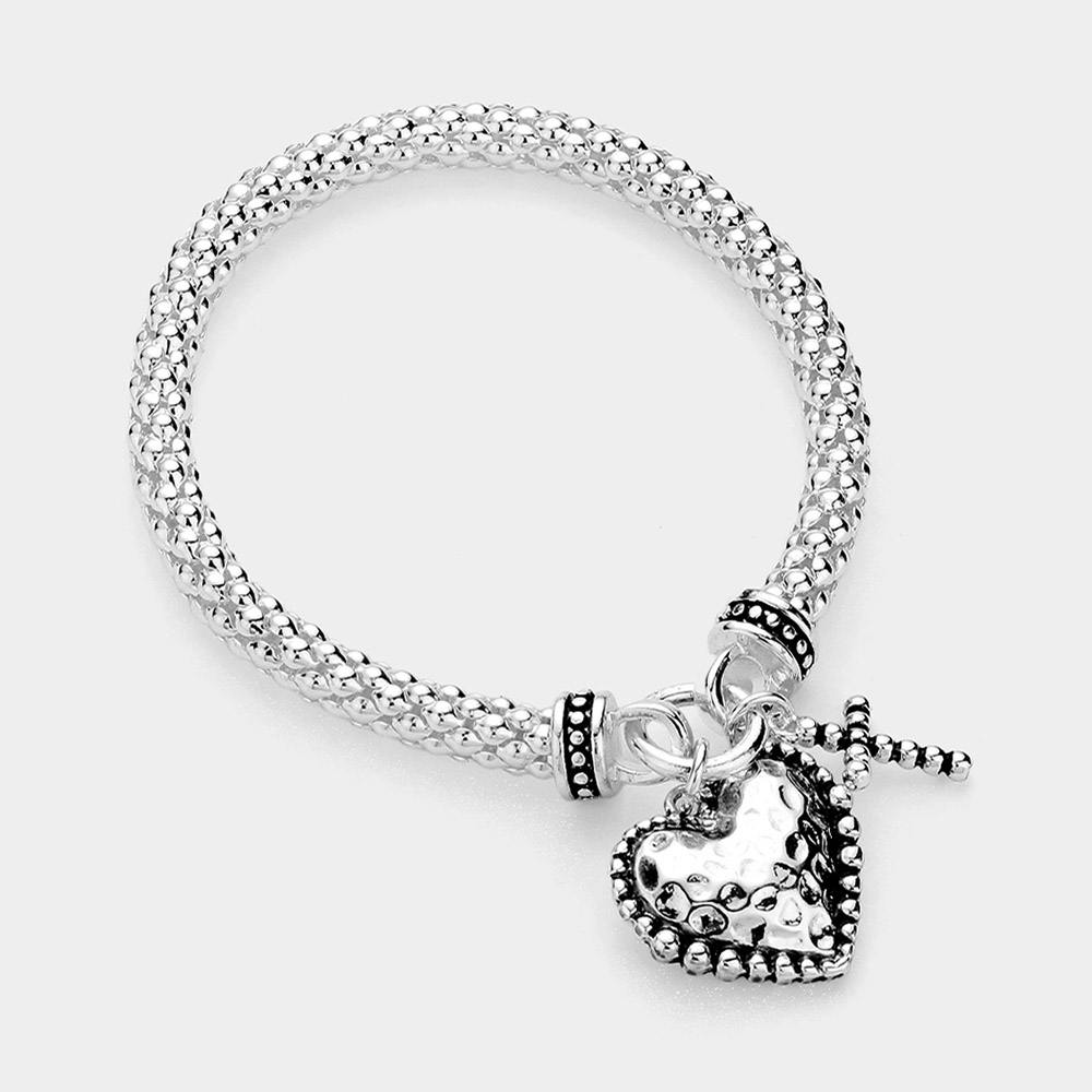 Antique Metal Heart Cross Charm Stretch Bracelet