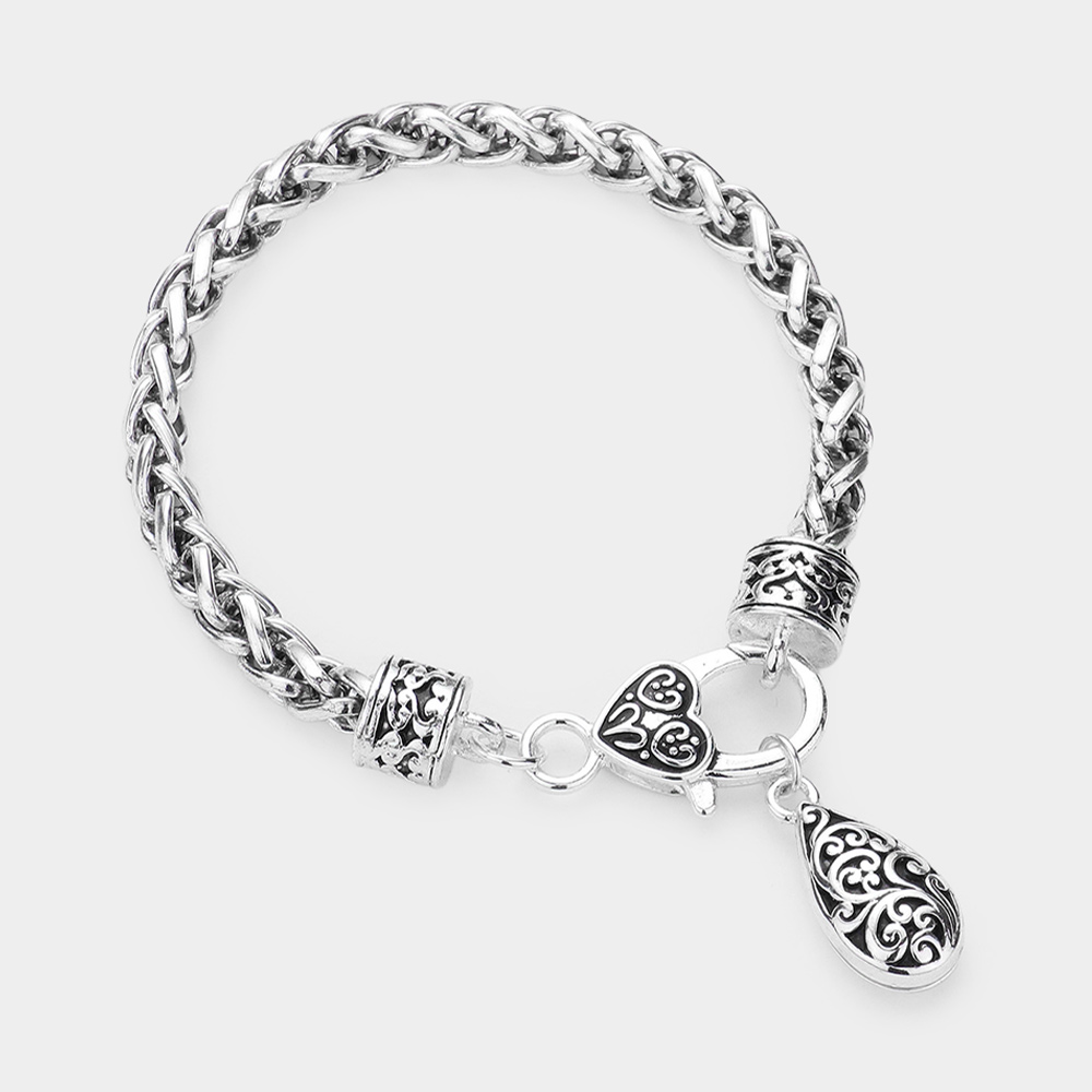 Antique Metal Teardrop Charm Bracelet