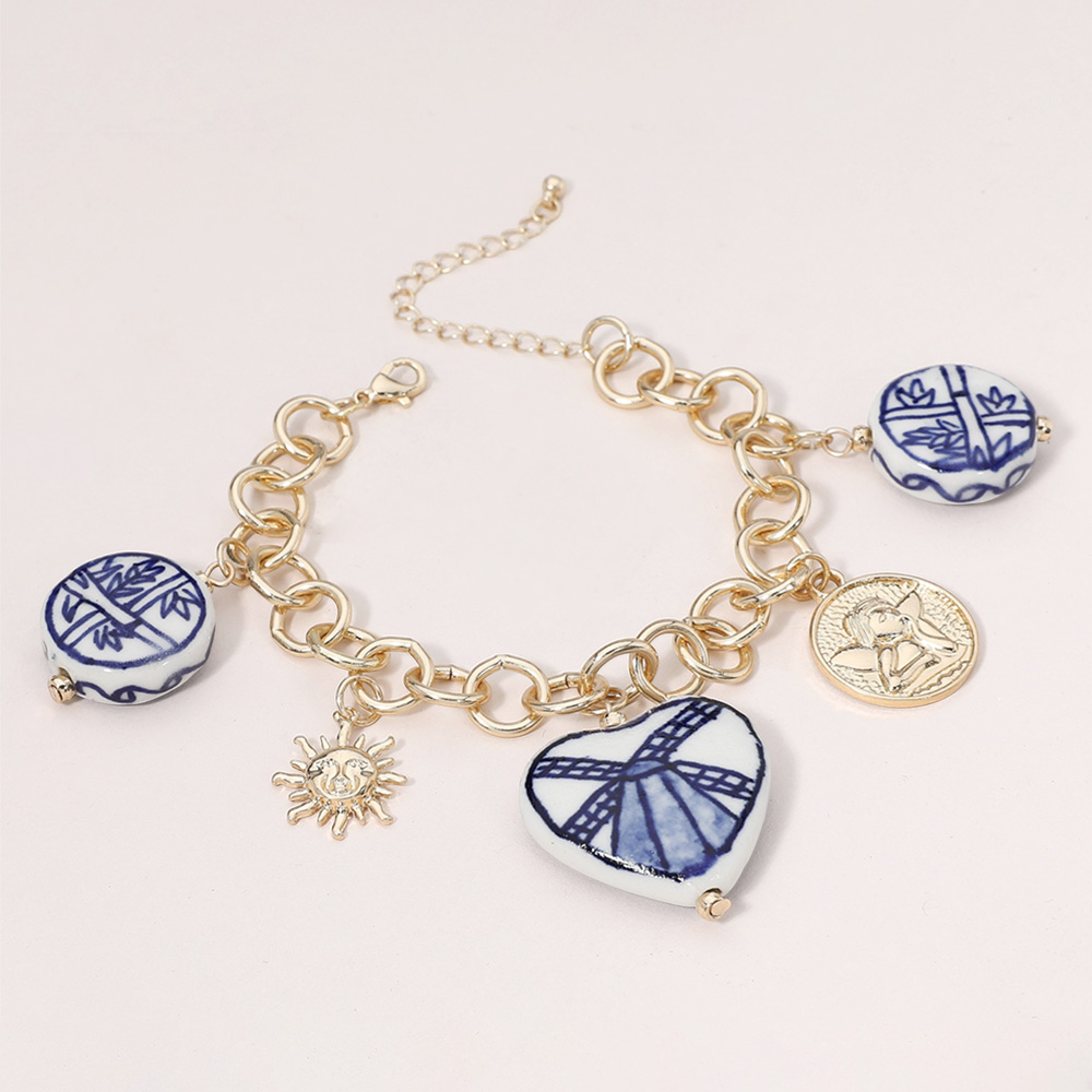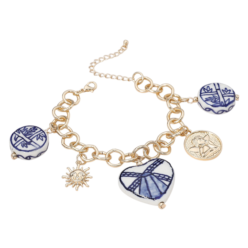 Ceramic Disc Heart Metal Sun Angel Medal Charm Station Bracelet