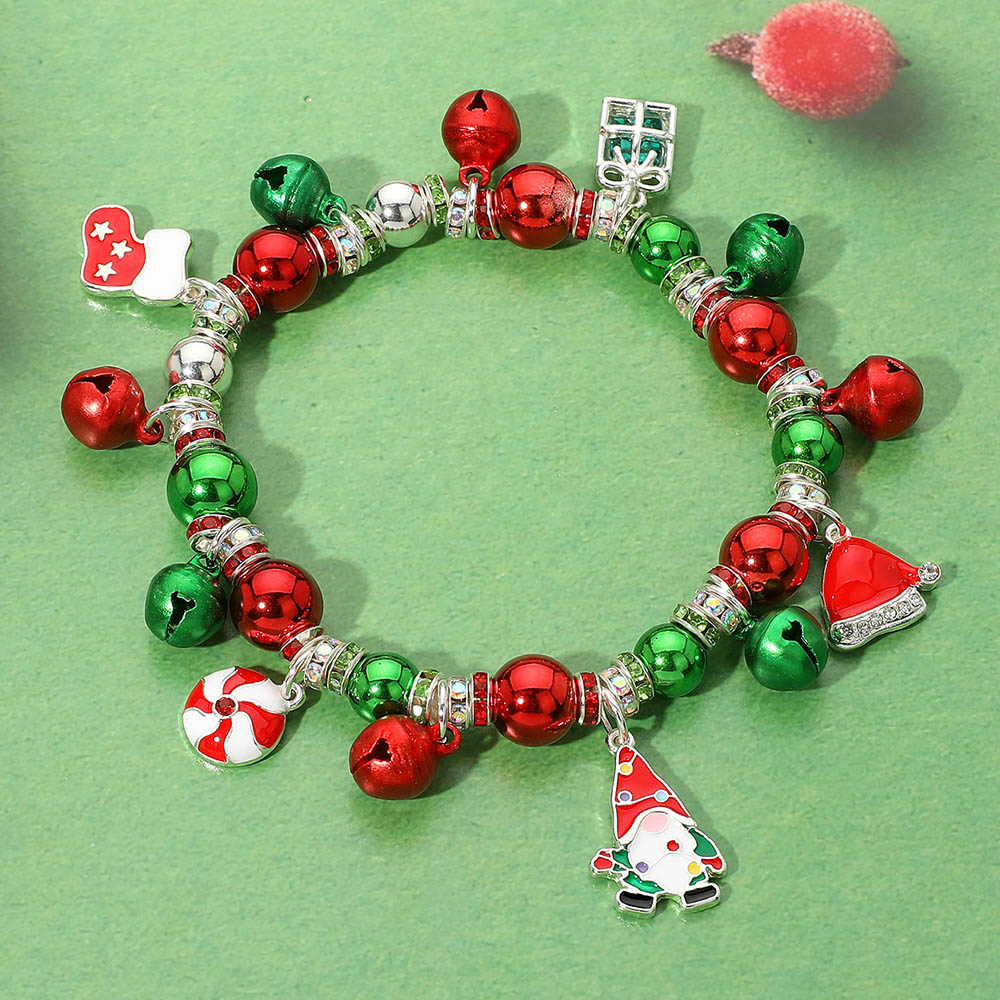 Details • Size : 1" H • Stretchable • Bring joy to your holiday look with this festive Christmas bracelet. Decorated with jingle bells and playful charms like mittens, Santa hat, and gifts, it’s a cheerful accessory for parties, gifting, or daily wear. • Lead and Nickel Compliant