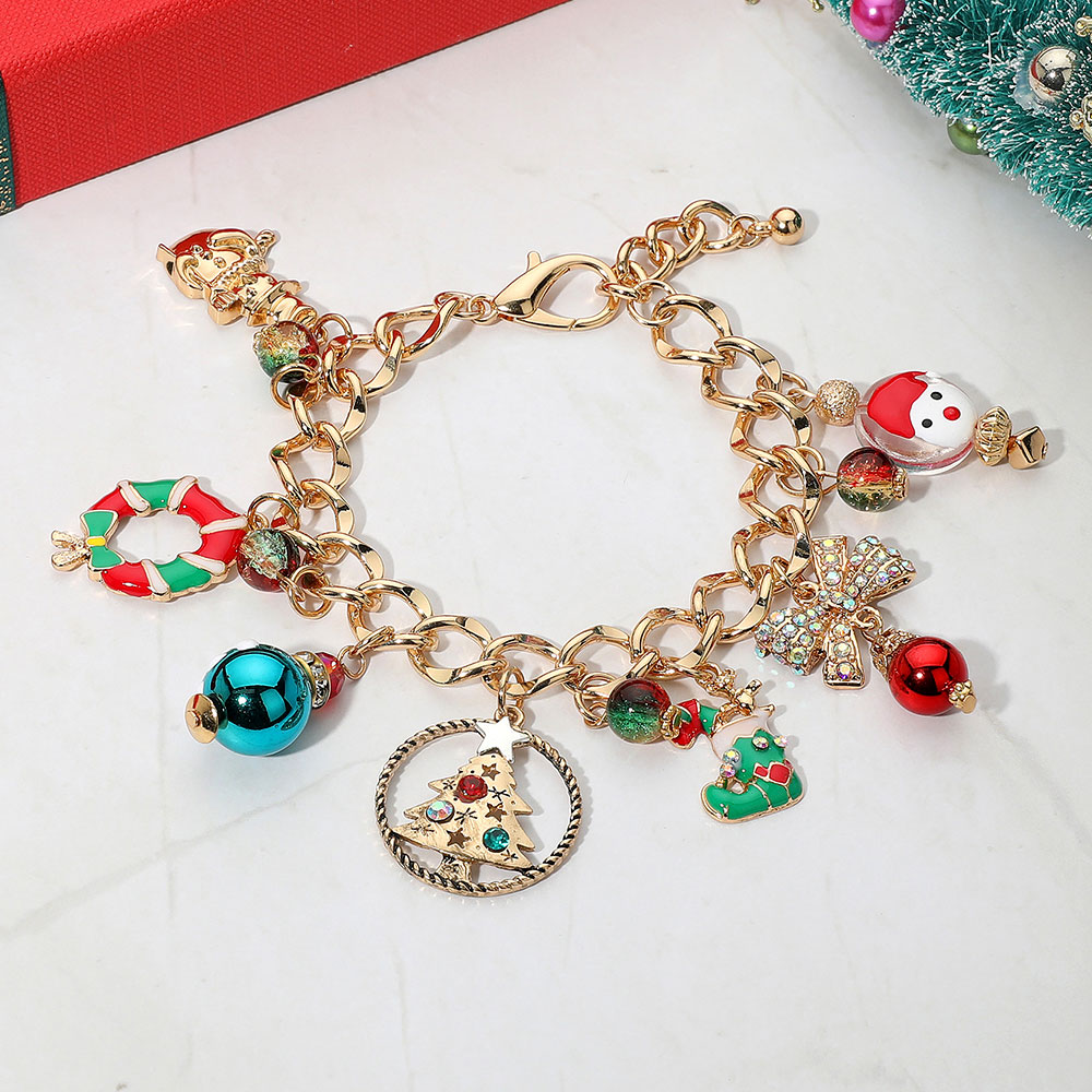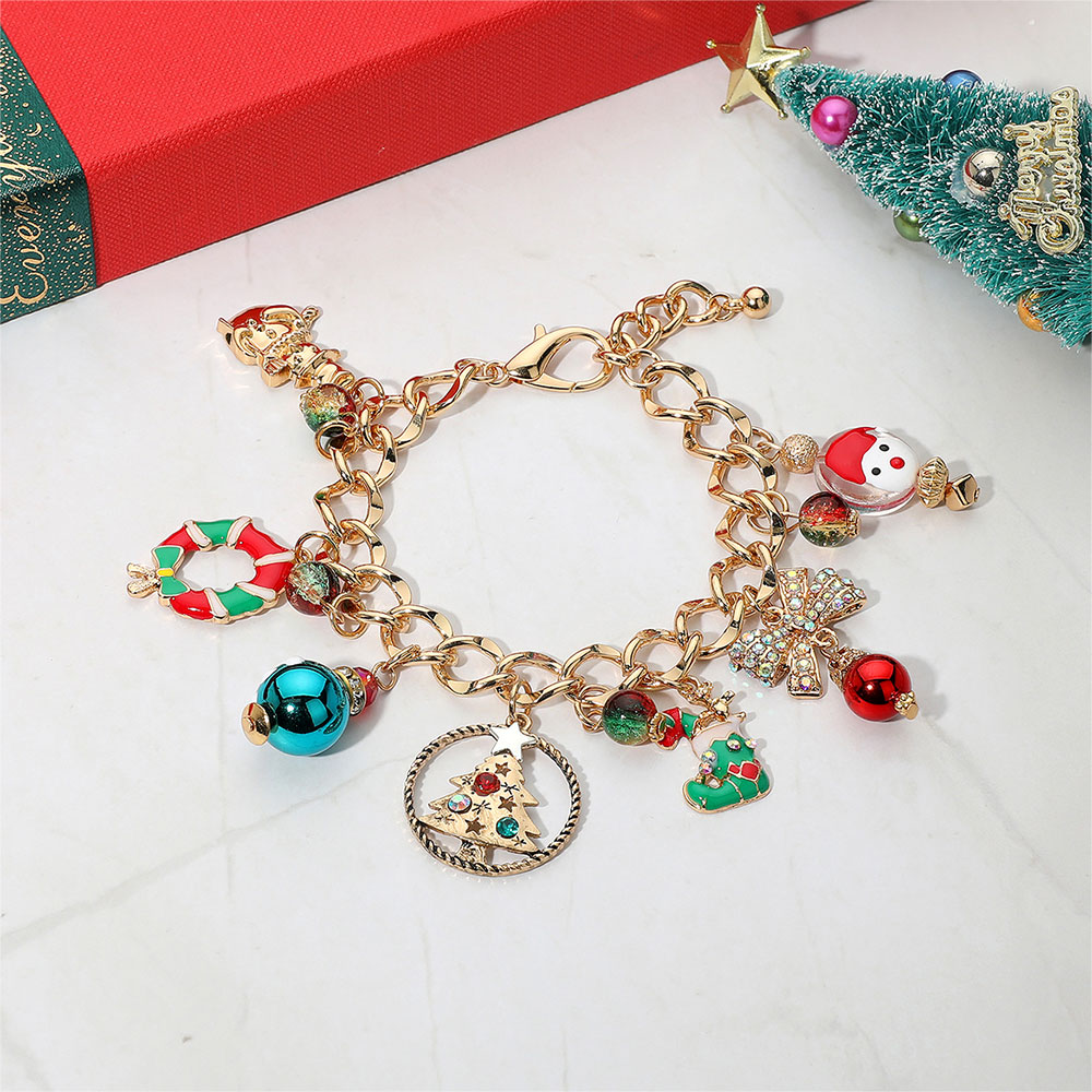 Christmas Tree Santa Stocking Bow Festive Holiday Themed Charm Bracelet