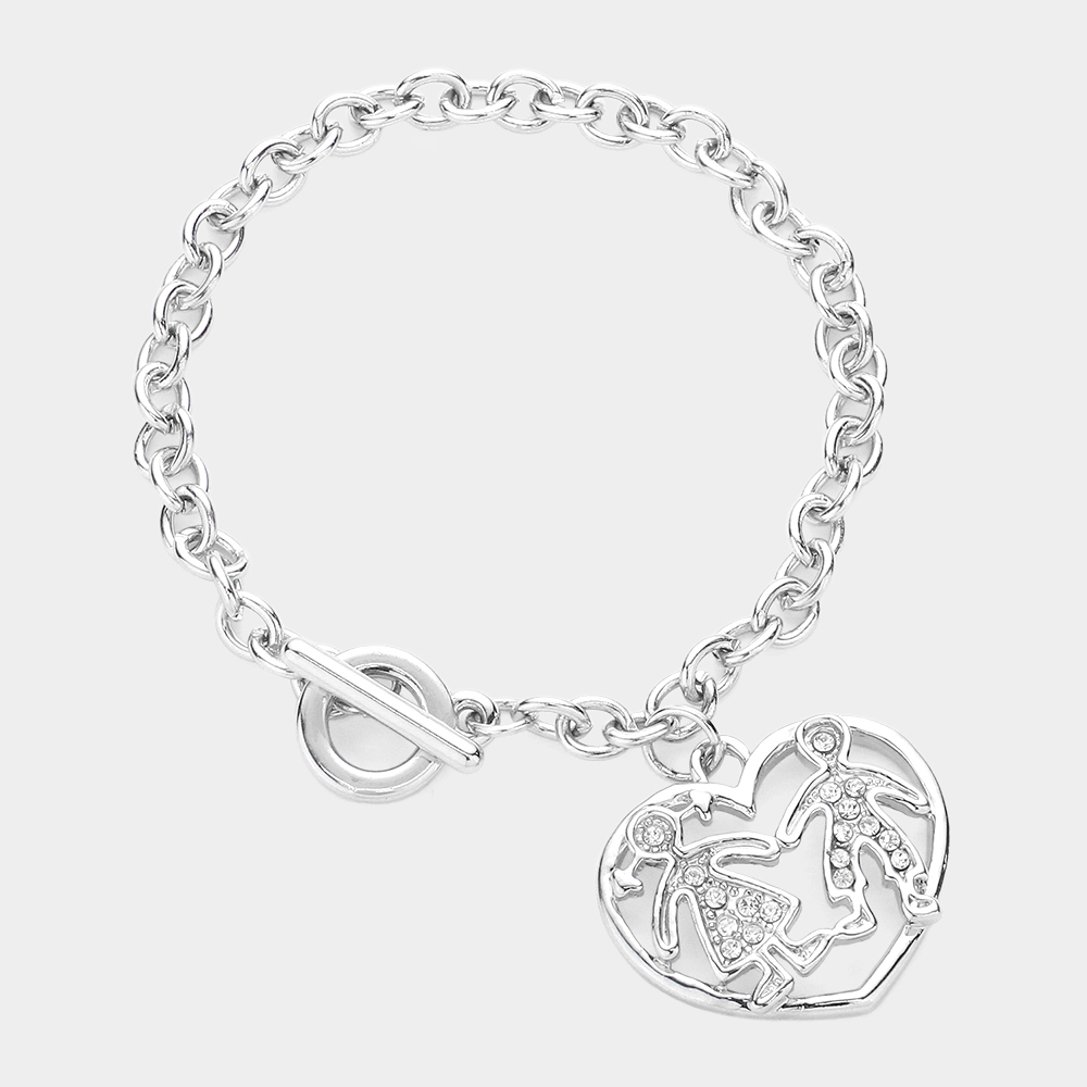 Couple Accented Heart Charm Toggle Bracelet