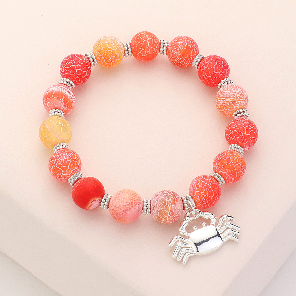 Textured Metal Sea Shell Starfish Coral Charm Station Necklace