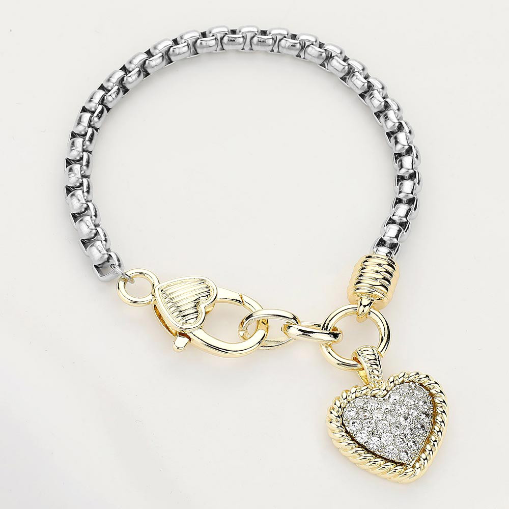 Details • Size : 7" + 0.5" L • Charm Size : 1" X 1" • Lobster Clasp Closure • Elegant box chain bracelet featuring a shimmering crystal heart charm, crafted to bring timeless romance and modern sophistication. Perfect for everyday wear or gifting, this bracelet adds a sparkling touch of love and style, making it a versatile accessory for any jewelry collection. • CZ Cubic Zirconia