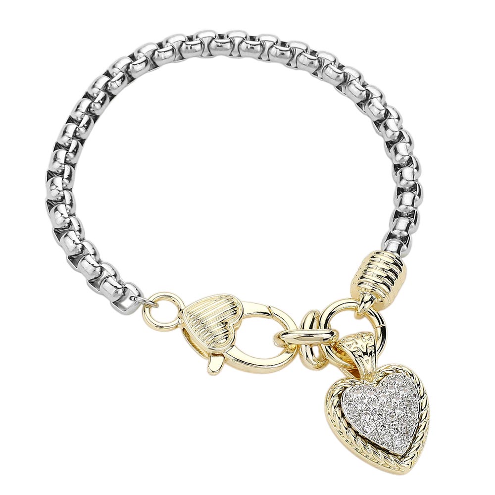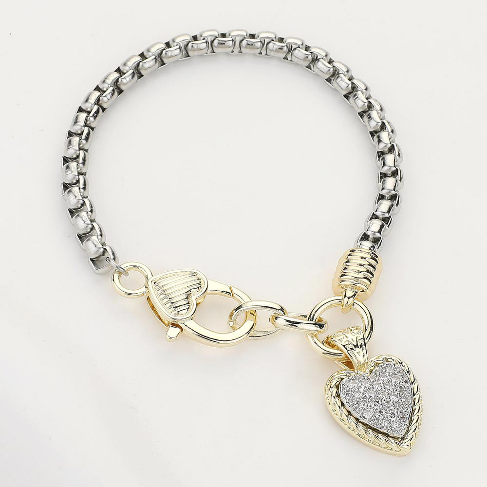 Details • Size : 7" + 0.5" L • Charm Size : 0.75" X 1" • Lobster Clasp Closure • Elegant box link bracelet featuring a sparkling heart charm and secure lobster clasp. A versatile piece that blends charm and sophistication, perfect for gifting or everyday wear. Its timeless design makes it an ideal accent for both casual and dressy looks. • CZ Cubic Zirconia