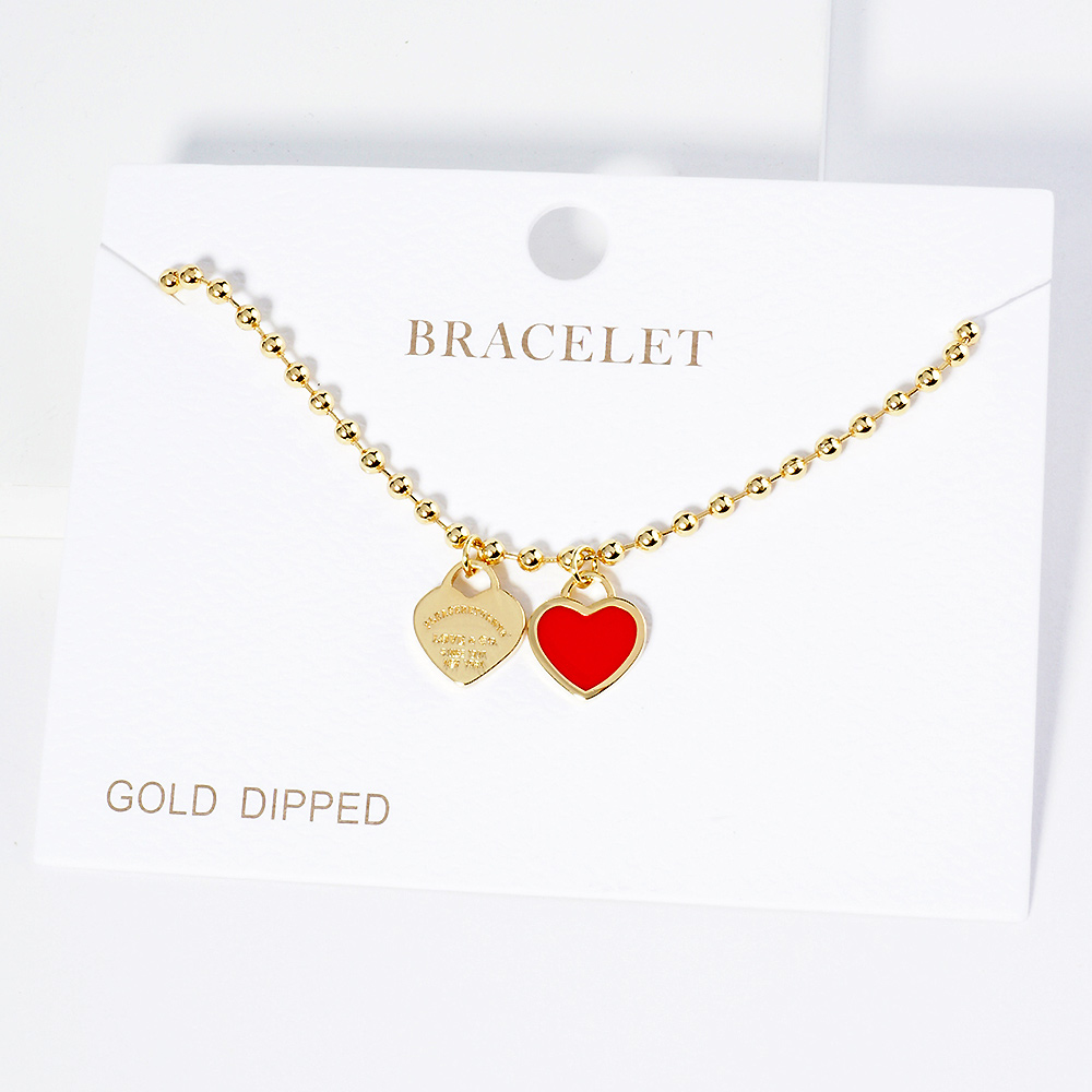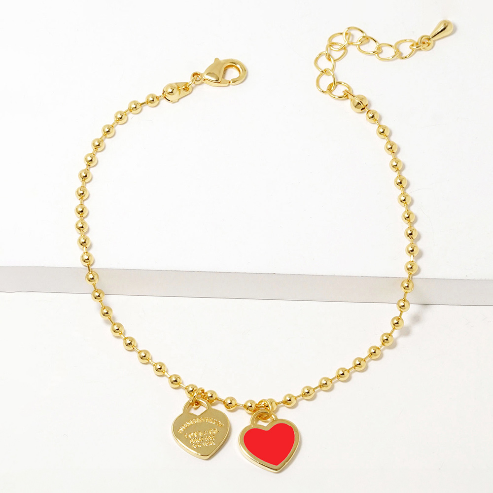 Double Heart Charm Bubble Chain Bracelet