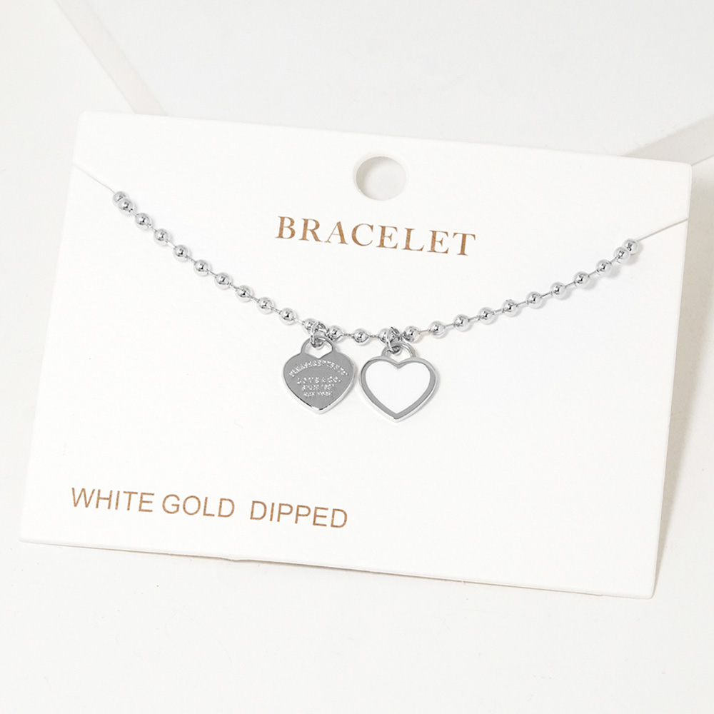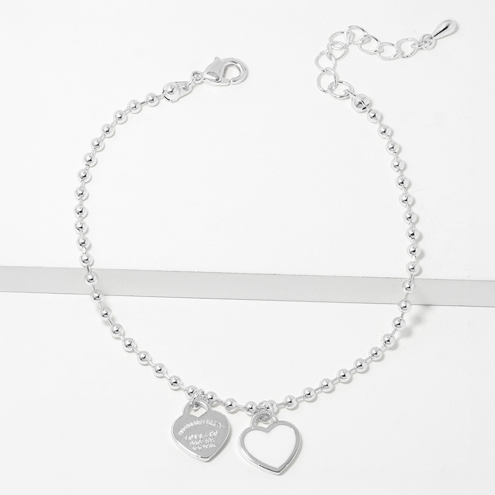 Double Heart Charm Bubble Chain Bracelet