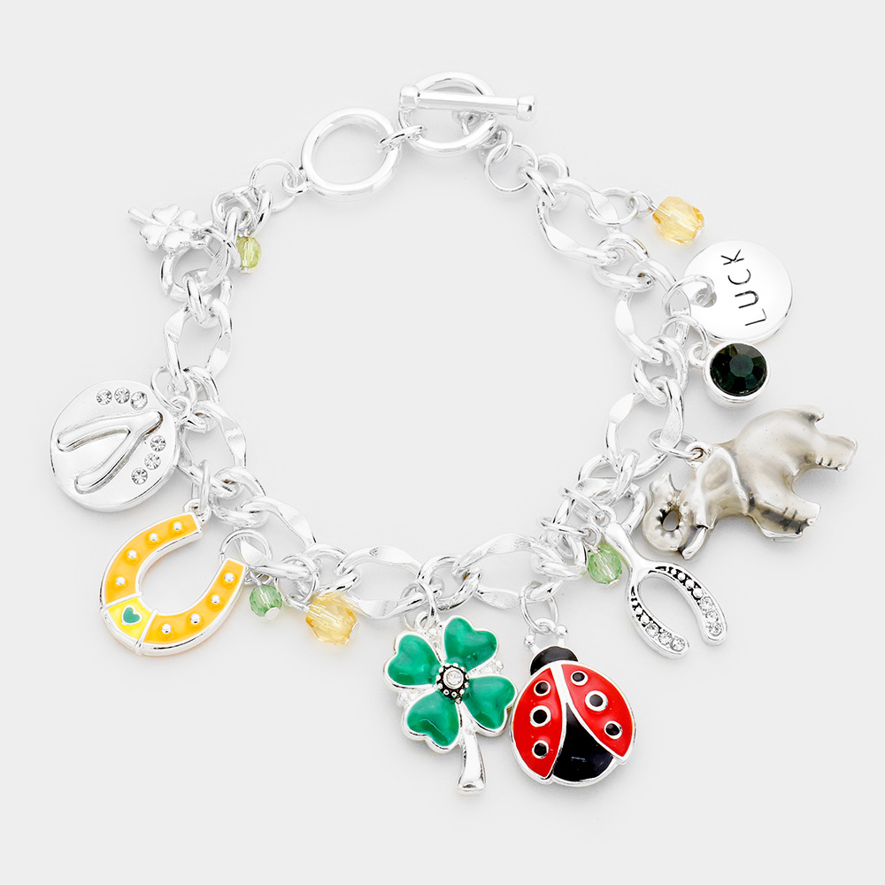 Enamel Luck Multi Charm Charm Toggle Bracelet