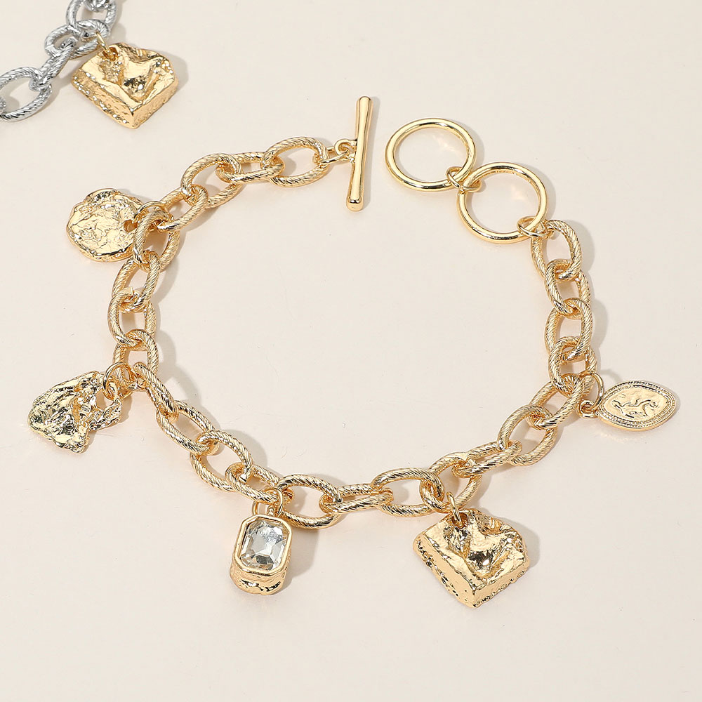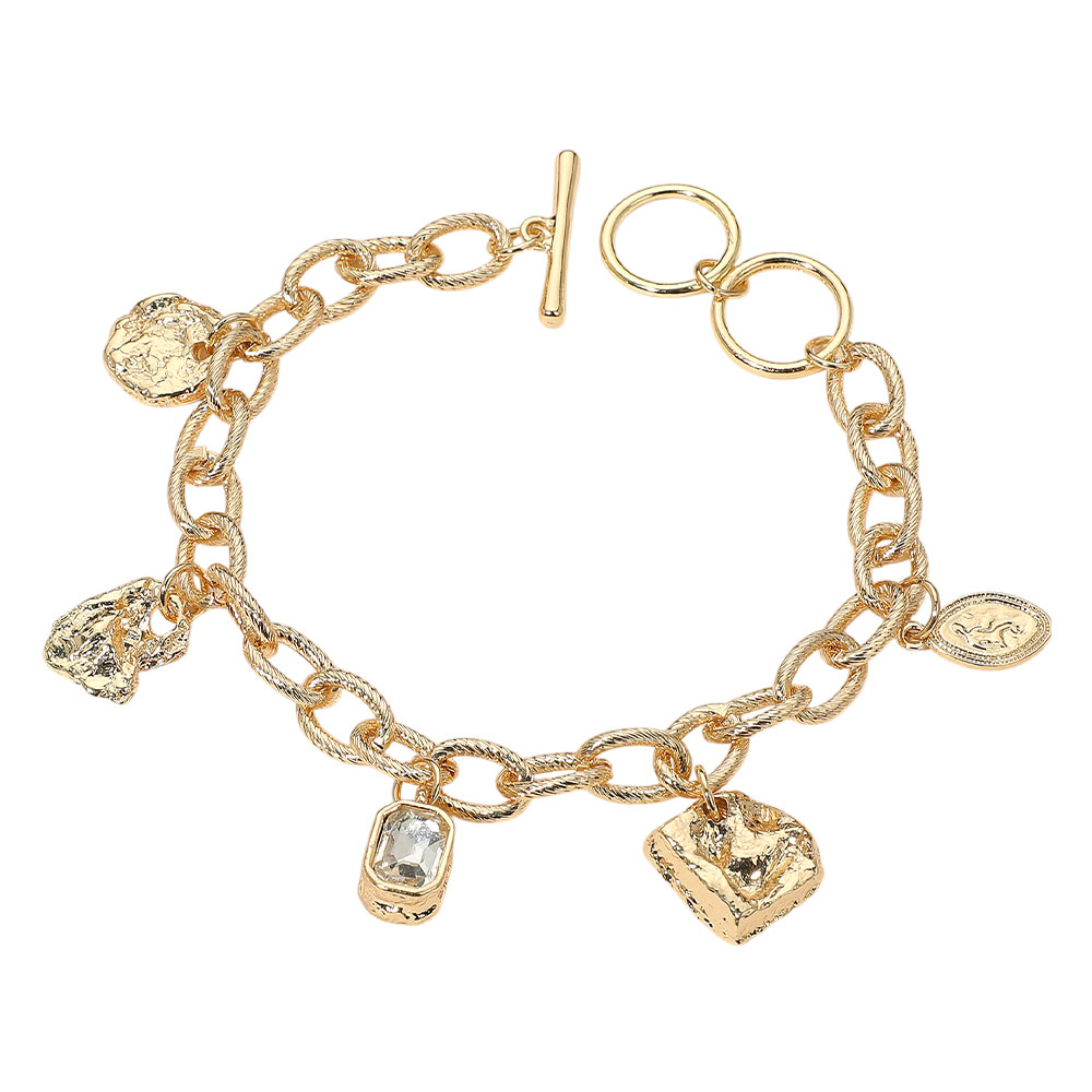 Geometric Textured Charm Station Chunky Chain Toggle Bracelet