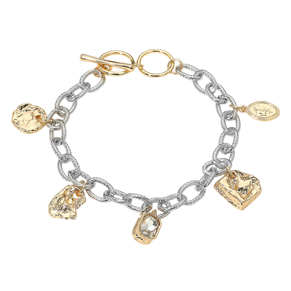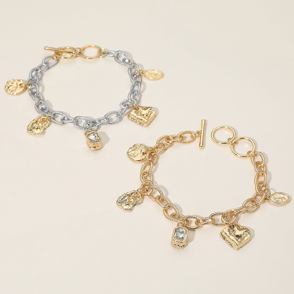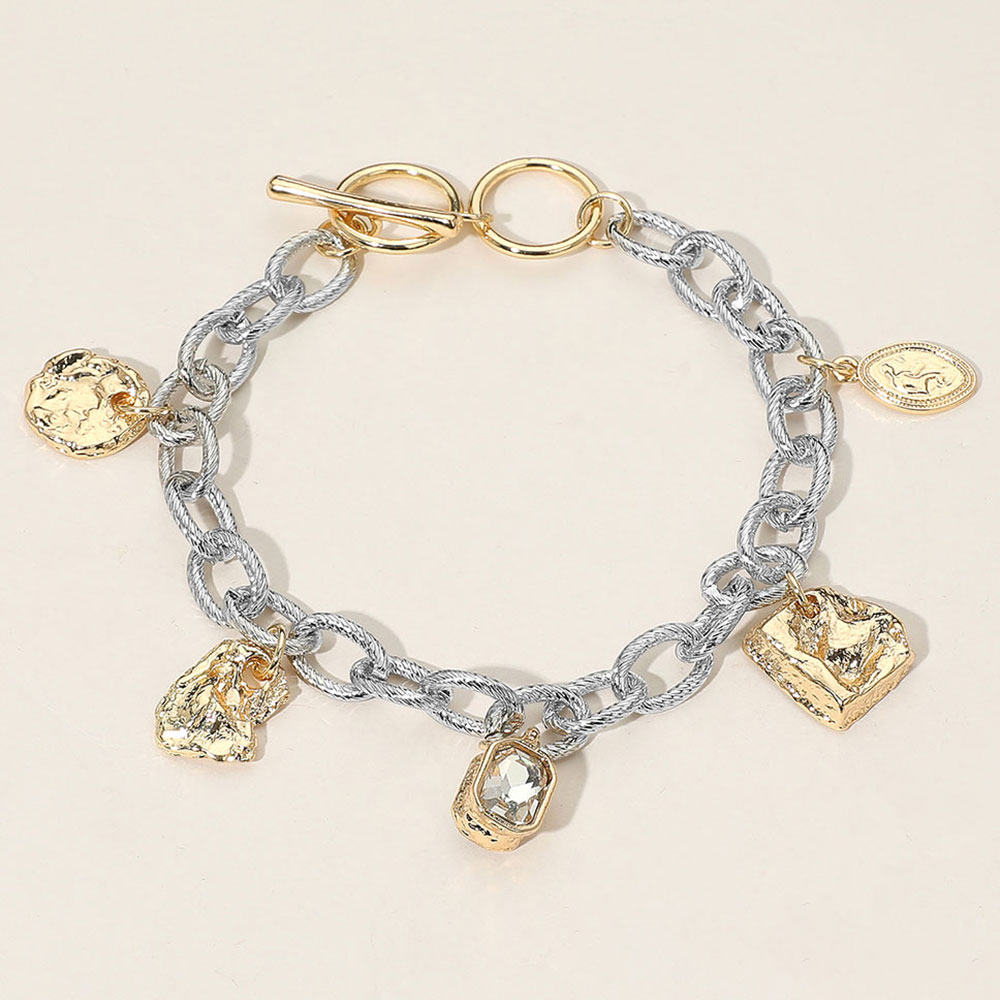 Geometric Textured Charm Station Chunky Chain Toggle Bracelet